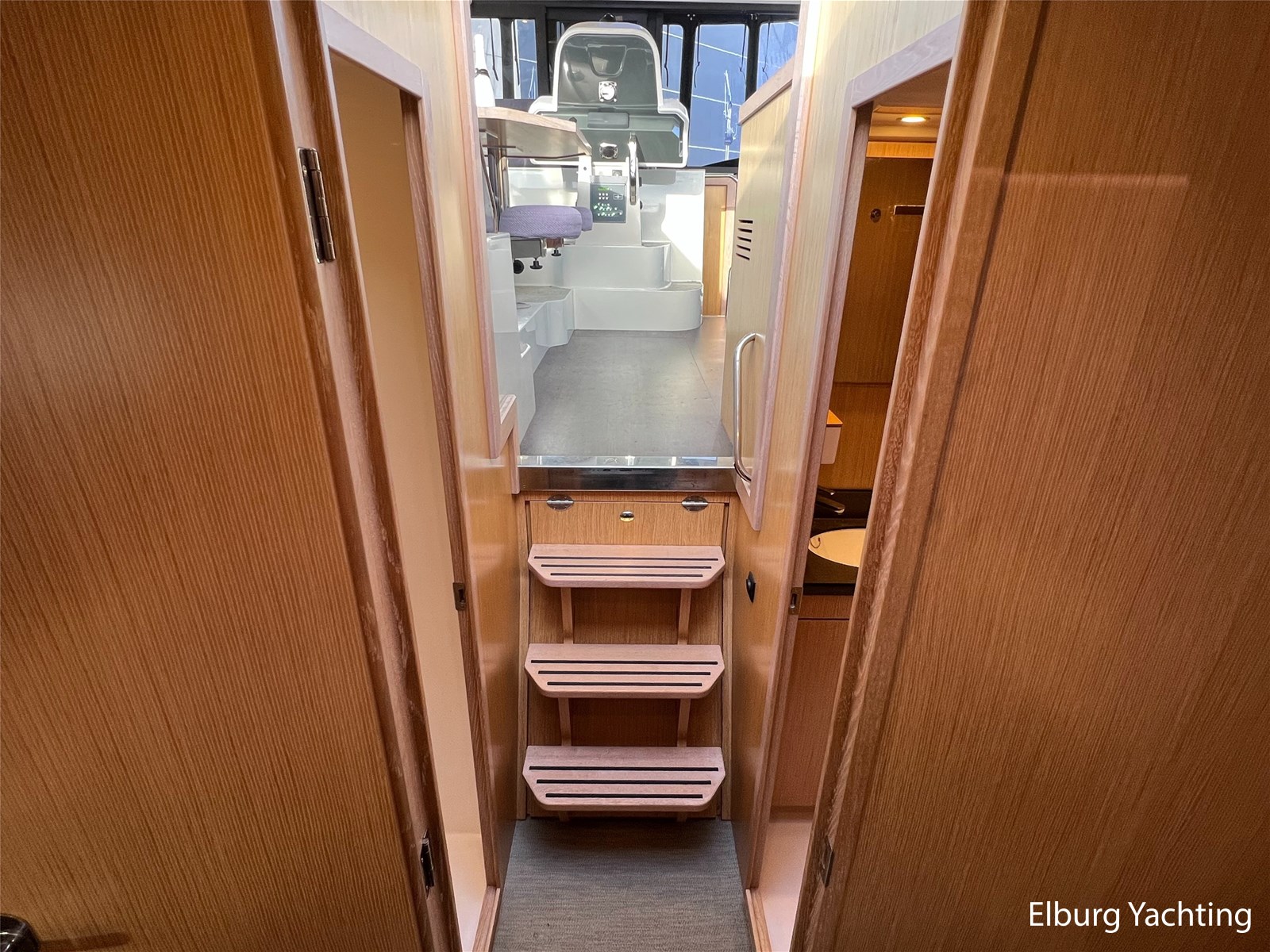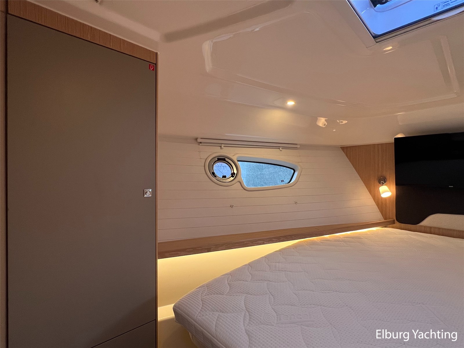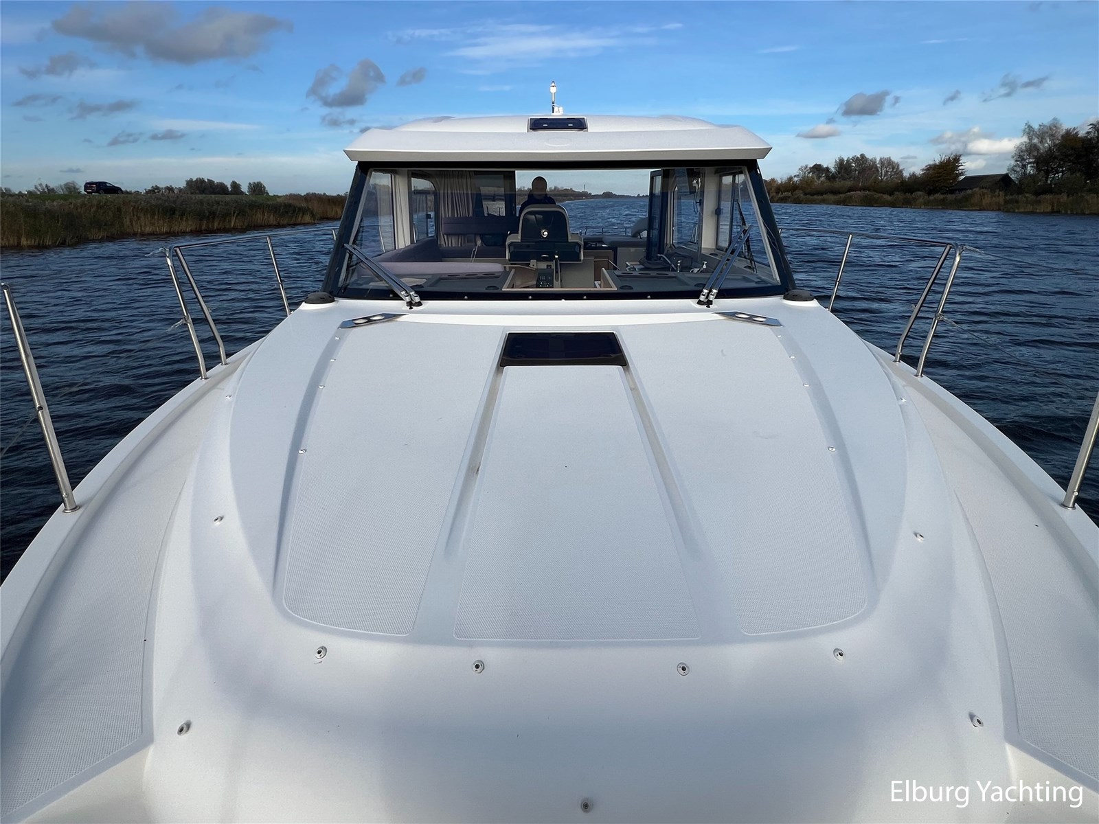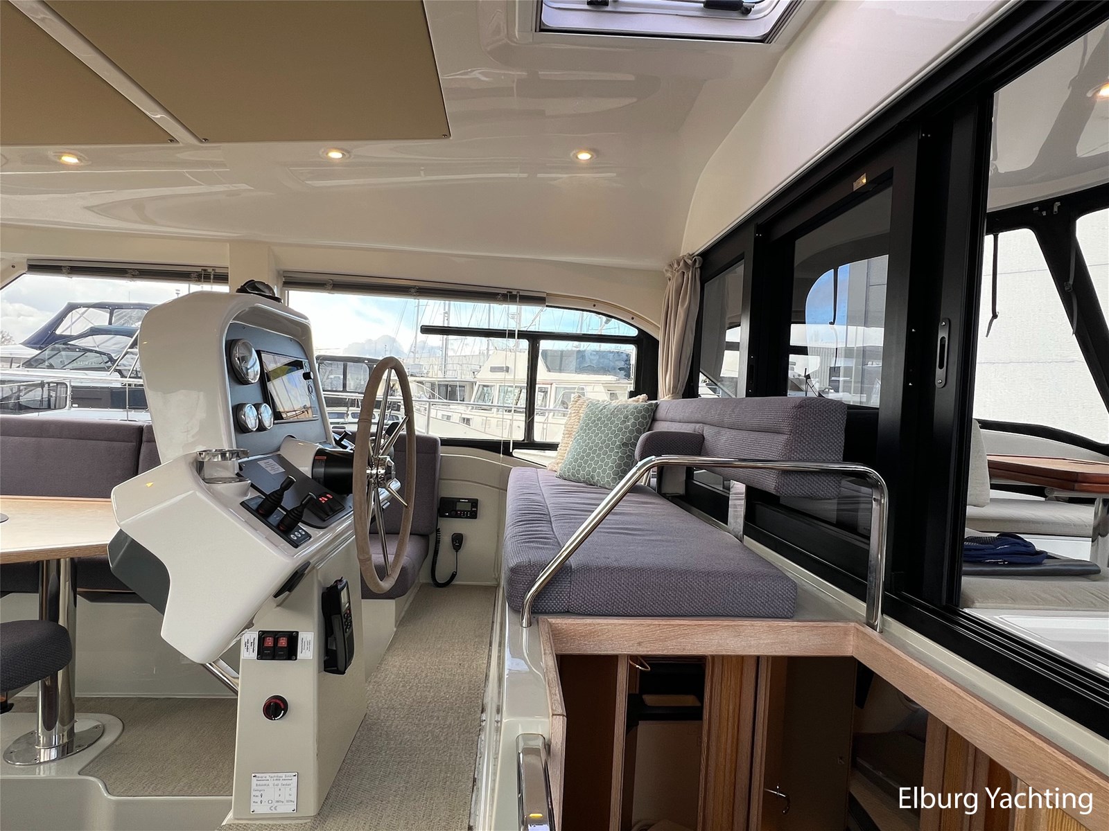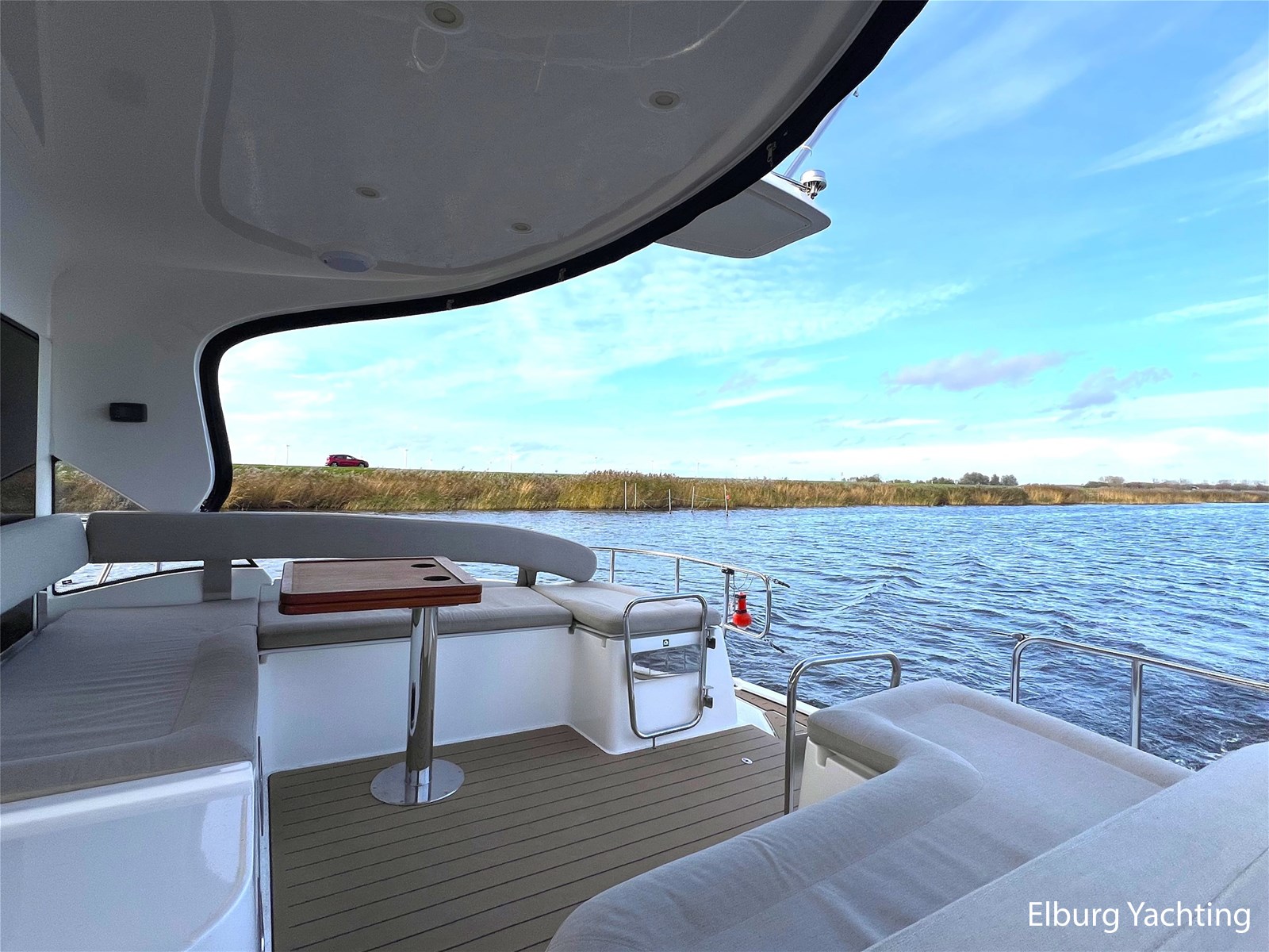 Deze jonge Bavaria E40 wordt aangeboden door haar tweede eigenaar. De Bavaria E40 Sedan is gebouwd met heel veel praktische ruimte voor haar afmeting en is voorzien van 3 volwaardige hutten. Dit exemplaar is uitgerust met de topmotorisering van 1 x 300 pk Volvo Penta D4 en heeft een vast schroefas aandrijving, waarmee een maximale snelheid wordt bereikt van ca. 13 knopen. De kuip biedt plaats voor ca. 8 personen en loopt gelijkvloers rond met de gangboorden. Vanuit de kuip is er een korte doorloop naar de salon, waar zich aan de rechterzijde de verhoogde stuurstand bevind. De stuurstand biedt plek voor minimaal 2 personen en beschikt over alle benodigde moderne navigatie apparatuur; zoals een een elektrische boeg- en hekschroef bediening, een vaste Simrad HS35 marifoon met daarnaast een tweede gekoppelde handheld toestel, een Simrad NSS Evo 3 plotter met autopilot en een Fusion audiosysteem met volumeregeling in de salon en kuip. Aan bakboordzijde van de salon is er een ruim opgezette keuken gesitueerd met aan de stuurboordzijde de dinette die volledig uitzicht rondom biedt. De salon is voorzien van grote raampartijen die zorgen voor een ruimtelijk gevoel en veel lichtinval. Tussen de stuurstand en de kuip bevinden zich wegschuifbare ramen, zodat de kapitein en zijn bezoek samen de tocht ervaren. Naar voren in het schip bevind zich een 2 persoons hut, met aan de bakboordzijde een toilet en aan stuurboordzijde een douchecabine. Achter de stuurstand is via een trap naar beneden de tweede en derde hut te bereikbaar, elk voorzien van een tweepersoonsbed. Ook is er een tweede badkamer met een gezamenlijk douche en toilet aanwezig. Deze Bavaria E40 is verder voorzien van: Geïntegreerde kuipbanken met afneembare kussens, afsluitbare kuiptent (2025), afneembare r.v.s. davits, klapbaar zwemplateau in spiegel, 2 x dakluik in salon + 2 x schuifraam (SB+BB), kussens voor zonnebed op voordek aanwezig, groot bergluik in voorschip, TV in salon en in alle hutten, klapbare r.v.s. mast met toplicht waarmee een minimale hoogte verkregen wordt van ca. 3,80m. Voor vragen en/of het maken van een afspraak bent u 7 dagen per week van harte welkom bij Elburg Yachting
