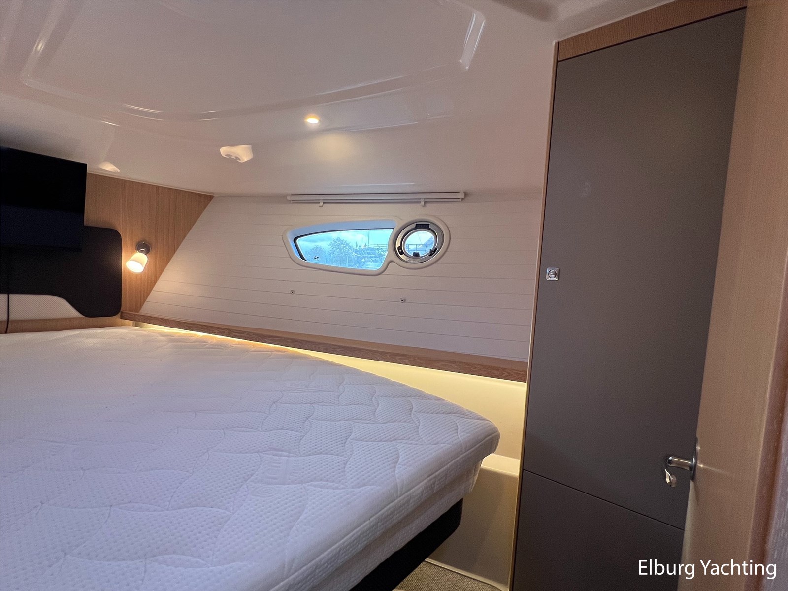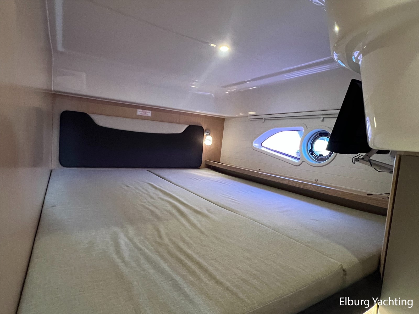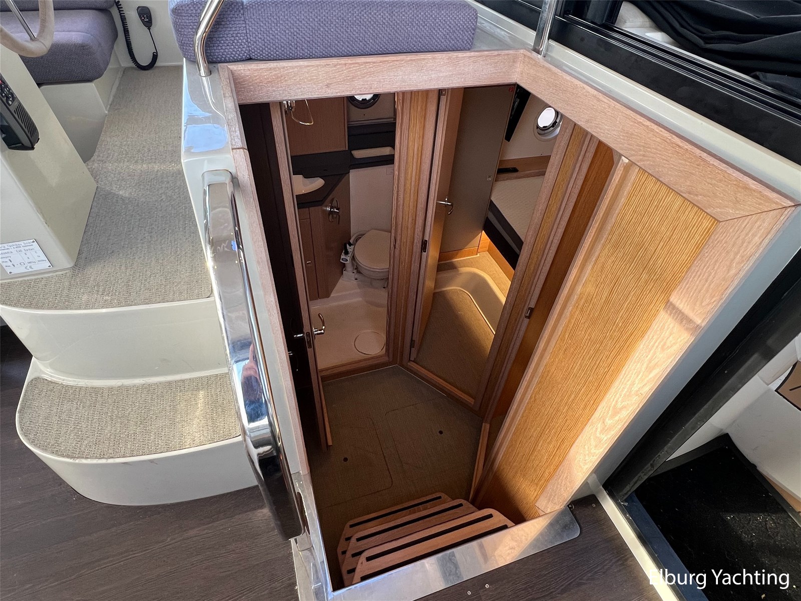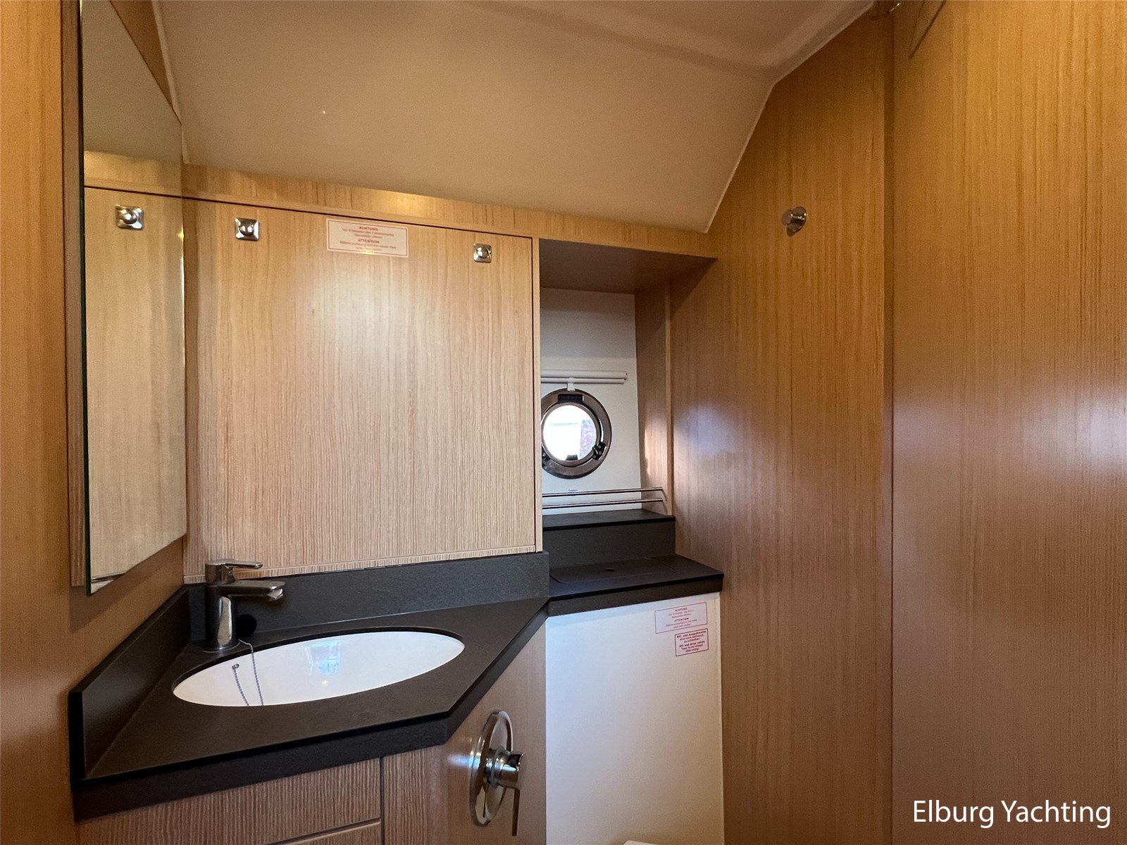 Deze jonge Bavaria E40 wordt aangeboden door haar tweede eigenaar. De Bavaria E40 Sedan is gebouwd met heel veel praktische ruimte voor haar afmeting en is voorzien van 3 volwaardige hutten. Dit exemplaar is uitgerust met de topmotorisering van 1 x 300 pk Volvo Penta D4 en heeft een vast schroefas aandrijving, waarmee een maximale snelheid wordt bereikt van ca. 13 knopen. De kuip biedt plaats voor ca. 8 personen en loopt gelijkvloers rond met de gangboorden. Vanuit de kuip is er een korte doorloop naar de salon, waar zich aan de rechterzijde de verhoogde stuurstand bevind. De stuurstand biedt plek voor minimaal 2 personen en beschikt over alle benodigde moderne navigatie apparatuur; zoals een een elektrische boeg- en hekschroef bediening, een vaste Simrad HS35 marifoon met daarnaast een tweede gekoppelde handheld toestel, een Simrad NSS Evo 3 plotter met autopilot en een Fusion audiosysteem met volumeregeling in de salon en kuip. Aan bakboordzijde van de salon is er een ruim opgezette keuken gesitueerd met aan de stuurboordzijde de dinette die volledig uitzicht rondom biedt. De salon is voorzien van grote raampartijen die zorgen voor een ruimtelijk gevoel en veel lichtinval. Tussen de stuurstand en de kuip bevinden zich wegschuifbare ramen, zodat de kapitein en zijn bezoek samen de tocht ervaren. Naar voren in het schip bevind zich een 2 persoons hut, met aan de bakboordzijde een toilet en aan stuurboordzijde een douchecabine. Achter de stuurstand is via een trap naar beneden de tweede en derde hut te bereikbaar, elk voorzien van een tweepersoonsbed. Ook is er een tweede badkamer met een gezamenlijk douche en toilet aanwezig. Deze Bavaria E40 is verder voorzien van: Geïntegreerde kuipbanken met afneembare kussens, afsluitbare kuiptent (2025), afneembare r.v.s. davits, klapbaar zwemplateau in spiegel, 2 x dakluik in salon + 2 x schuifraam (SB+BB), kussens voor zonnebed op voordek aanwezig, groot bergluik in voorschip, TV in salon en in alle hutten, klapbare r.v.s. mast met toplicht waarmee een minimale hoogte verkregen wordt van ca. 3,80m. Voor vragen en/of het maken van een afspraak bent u 7 dagen per week van harte welkom bij Elburg Yachting