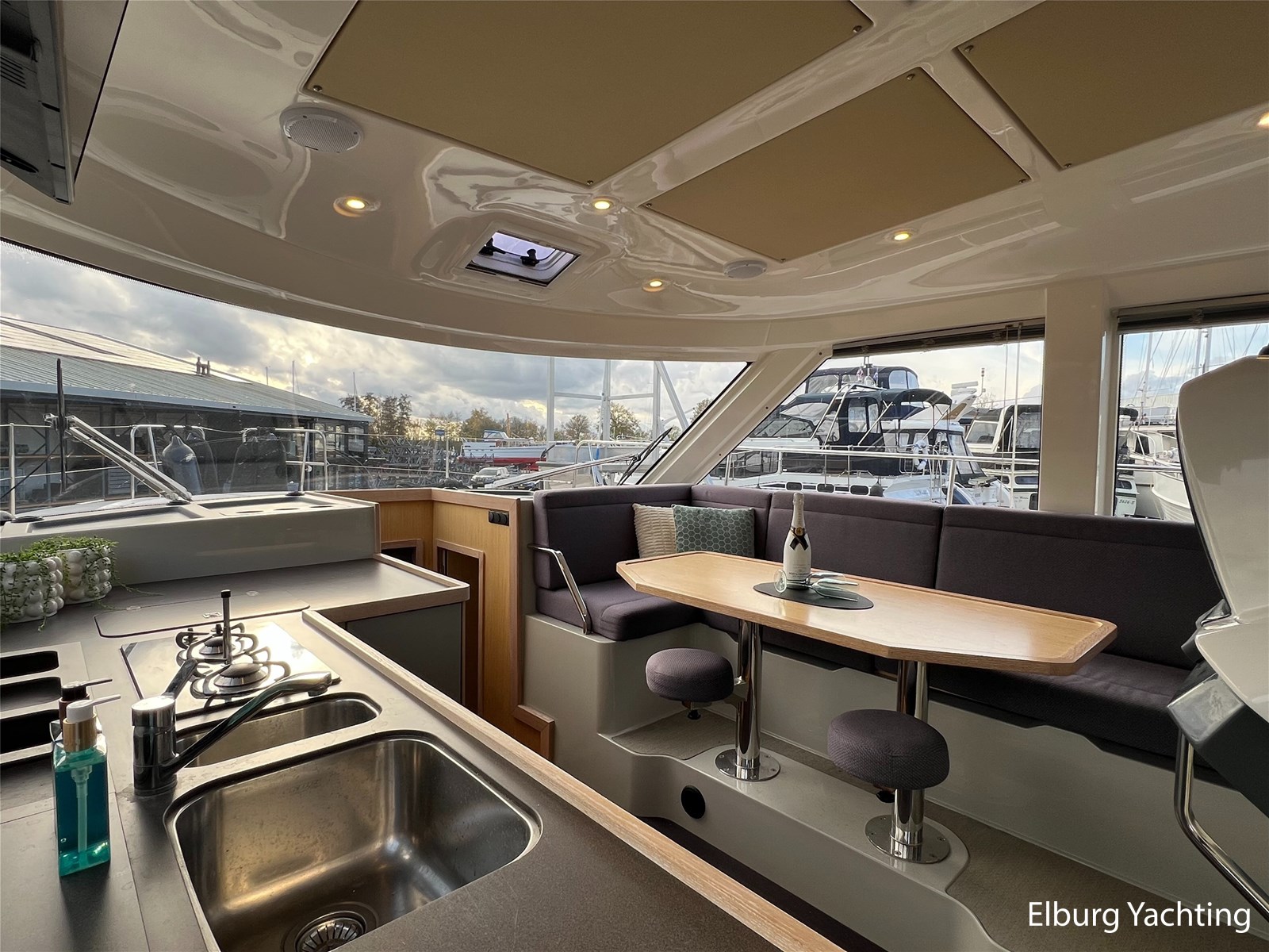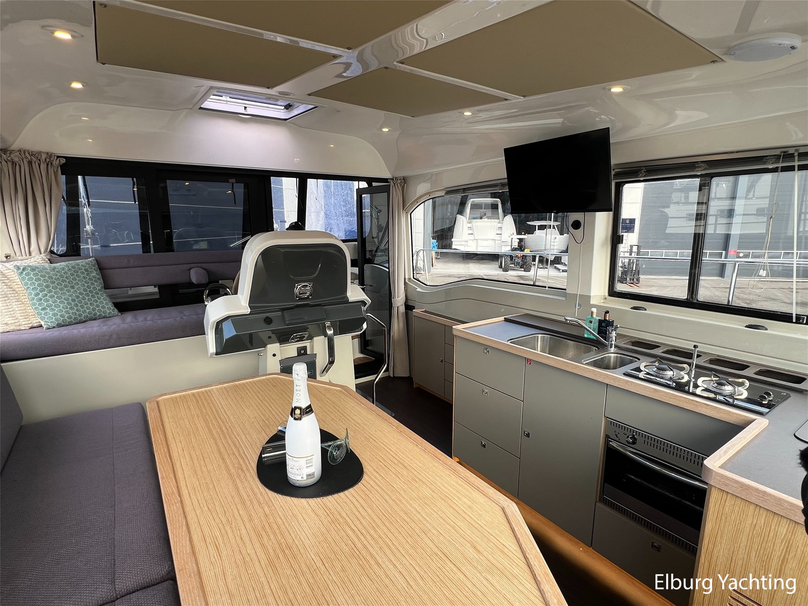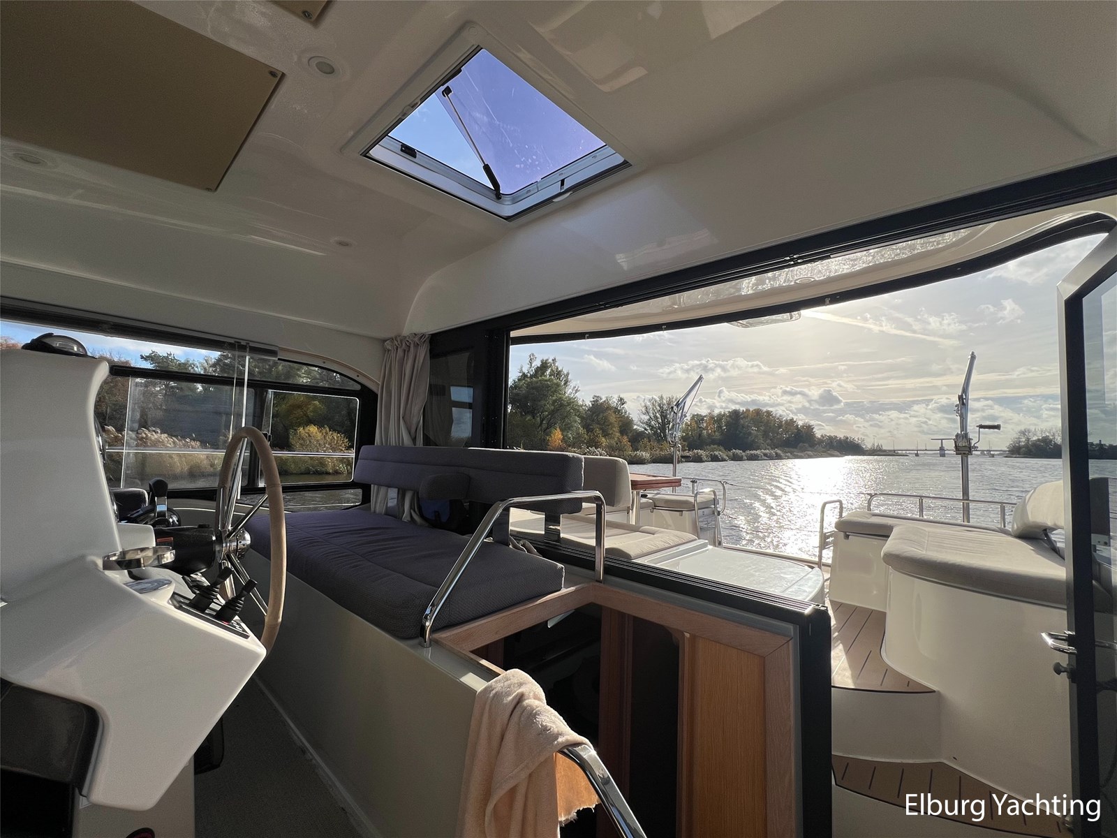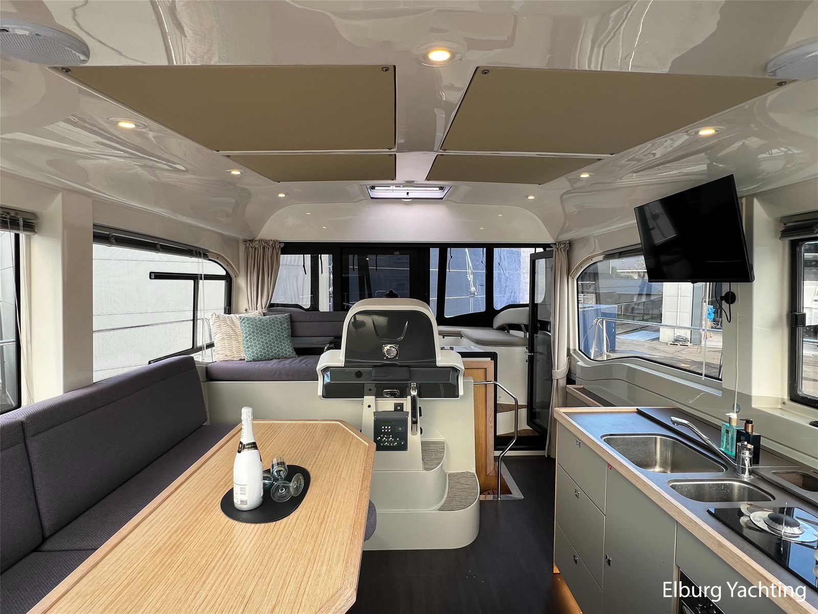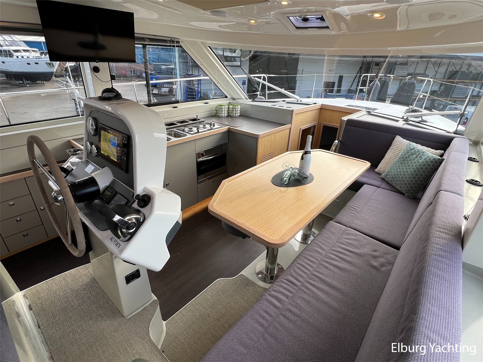 Deze jonge Bavaria E40 wordt aangeboden door haar tweede eigenaar. De Bavaria E40 Sedan is gebouwd met heel veel praktische ruimte voor haar afmeting en is voorzien van 3 volwaardige hutten. Dit exemplaar is uitgerust met de topmotorisering van 1 x 300 pk Volvo Penta D4 en heeft een vast schroefas aandrijving, waarmee een maximale snelheid wordt bereikt van ca. 13 knopen. De kuip biedt plaats voor ca. 8 personen en loopt gelijkvloers rond met de gangboorden. Vanuit de kuip is er een korte doorloop naar de salon, waar zich aan de rechterzijde de verhoogde stuurstand bevind. De stuurstand biedt plek voor minimaal 2 personen en beschikt over alle benodigde moderne navigatie apparatuur; zoals een een elektrische boeg- en hekschroef bediening, een vaste Simrad HS35 marifoon met daarnaast een tweede gekoppelde handheld toestel, een Simrad NSS Evo 3 plotter met autopilot en een Fusion audiosysteem met volumeregeling in de salon en kuip. Aan bakboordzijde van de salon is er een ruim opgezette keuken gesitueerd met aan de stuurboordzijde de dinette die volledig uitzicht rondom biedt. De salon is voorzien van grote raampartijen die zorgen voor een ruimtelijk gevoel en veel lichtinval. Tussen de stuurstand en de kuip bevinden zich wegschuifbare ramen, zodat de kapitein en zijn bezoek samen de tocht ervaren. Naar voren in het schip bevind zich een 2 persoons hut, met aan de bakboordzijde een toilet en aan stuurboordzijde een douchecabine. Achter de stuurstand is via een trap naar beneden de tweede en derde hut te bereikbaar, elk voorzien van een tweepersoonsbed. Ook is er een tweede badkamer met een gezamenlijk douche en toilet aanwezig. Deze Bavaria E40 is verder voorzien van: Geïntegreerde kuipbanken met afneembare kussens, afsluitbare kuiptent (2025), afneembare r.v.s. davits, klapbaar zwemplateau in spiegel, 2 x dakluik in salon + 2 x schuifraam (SB+BB), kussens voor zonnebed op voordek aanwezig, groot bergluik in voorschip, TV in salon en in alle hutten, klapbare r.v.s. mast met toplicht waarmee een minimale hoogte verkregen wordt van ca. 3,80m. Voor vragen en/of het maken van een afspraak bent u 7 dagen per week van harte welkom bij Elburg Yachting