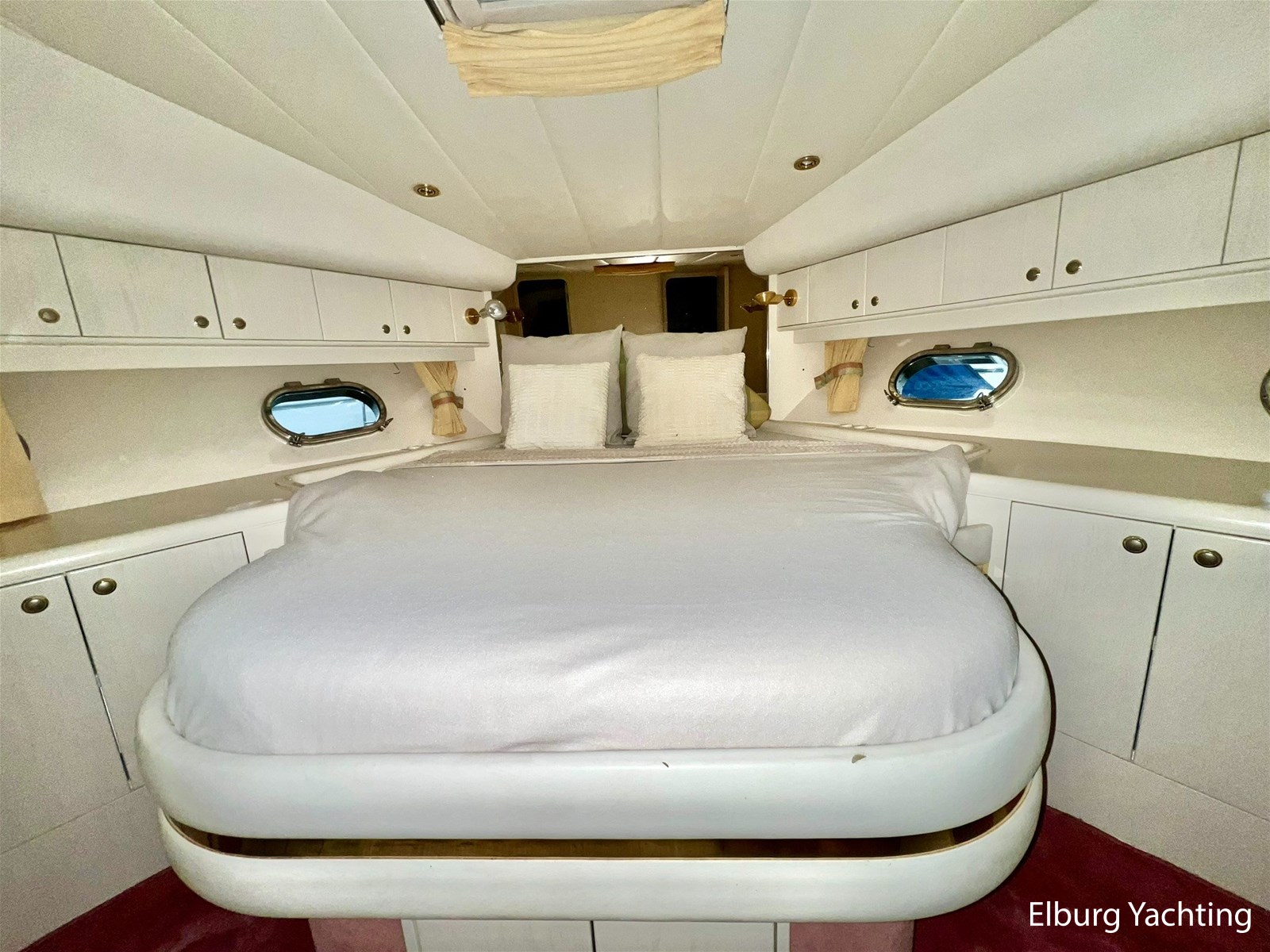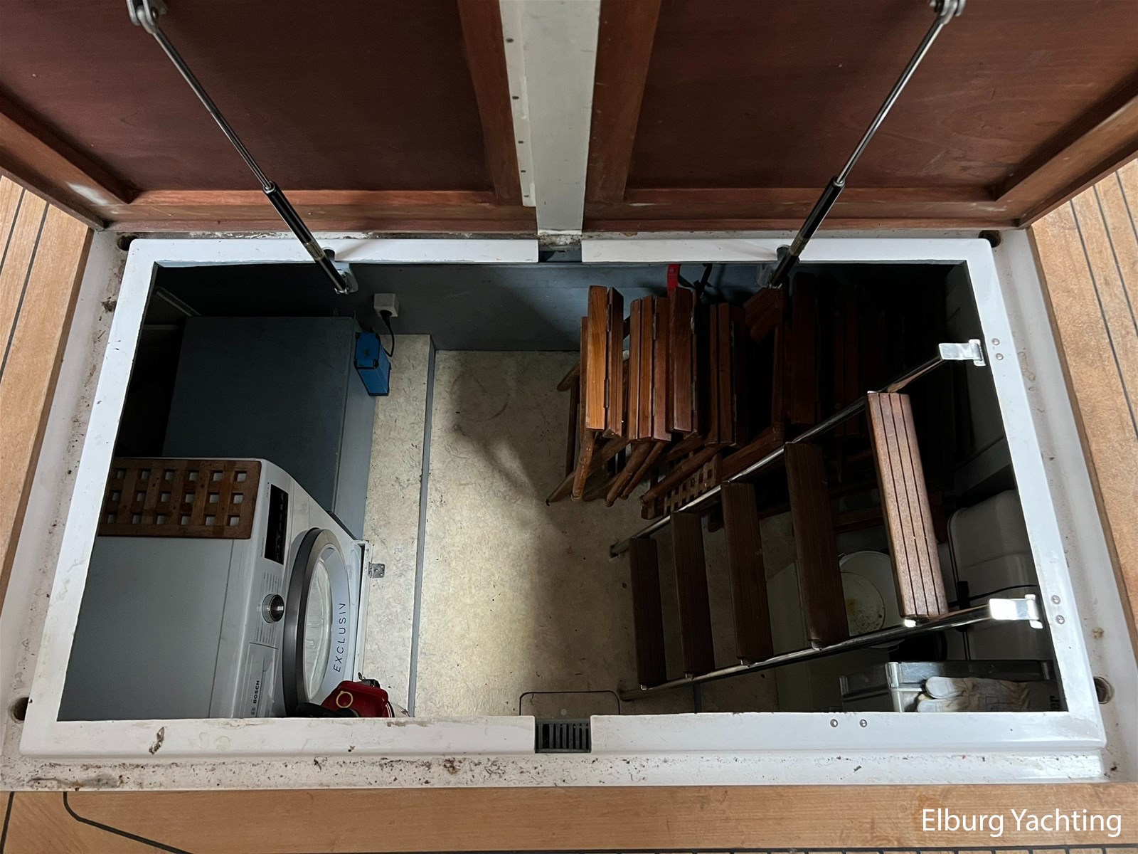 Deze ruime en sportieve Neptunus 156 verkeert in nette staat voor zijn leeftijd en wordt verkocht door de eerste eigenaar. Het jacht beschikt over drie hutten voor minimaal 6 opvarenden en heeft twee aparte badkamers. De open kuip en de salon zijn gelijkvloers met elkaar verbonden. Een complete tent dekt de open kuip af met grote zichtvensters. Via een vaste trap in de kuip krijg je krijg je toegang tot de riante flybridge met een U-vormige zitbank. De stuurstand heeft een 2-persoons vaarbank en biedt een overzichtelijke dashboard met alle benodigde apparatuur waaronder een vernieuwde Raymarine Axiom Pro 9 S plotter. De salon wordt betreden via een afsluitbare r.v.s. schuifpui. Een riante L-bank met twee geïntegreerde fauteuils bieden veel zit comfort. Er zijn veel opbergmogelijkheden in banken en kasten. De dinette bevindt zich tegen over de stuurstand waardoor de gehele crew op vaarhoogte kan meekijken. Benedendeks bevind zich de kombuis met een koelkast / vriezer / magnetron / vaatwasser / kookplaat en spoelbak. Aan SB-zijde bevind zich een 2 x 1-persoons gastenhut en aan BB-zijde een 1 x 2 persoons hut met frans bed. De gasten badkamer bevind zich midscheeps en is vrij toegankelijk. In het voorschip bevind zich de eigenaarshut met een 1 x 2 persoons bed met badkamer en-suite. Onder het bed van de voorhut bevind zich een ruime berging. Via een breed luik in de kuipvloer wordt het achterschip betreden. In het achterschip bevind zich opbergruimte, zowel een wasmachine als droger, de generator en nog verdere techniek. Via het achterschip is er een doorloop naar de machinekamer. De bakboordmotor is in de winter van 2023-2024 vervangen, rekeningen van deze werkzaamheden zijn beschikbaar. Deze Neptunus 156 is verder voorzien van: Afneembare kussens voor het achterdek, flybridge en voordek, bimini top over de flybridge, delen op de flybridge voorzien van afdekhoezen, r.v.s. fenderhouders, afsluitbare kuip met deur naar zwemplateau, buiten verlichting, 4 x schuifraam in salon voor ventilatie + 2 horren, muggenhorren voor patrijspoorten, afneembaar zonnescherm op voorruit, zijladder. Stahoogte in het interieur ca. 2 meter.
