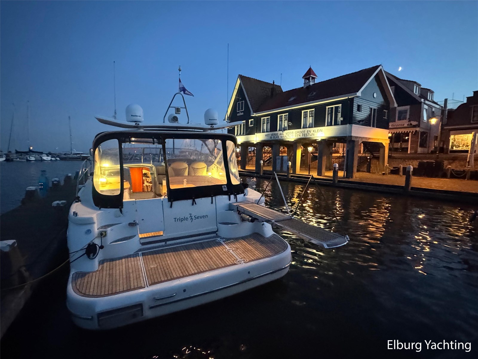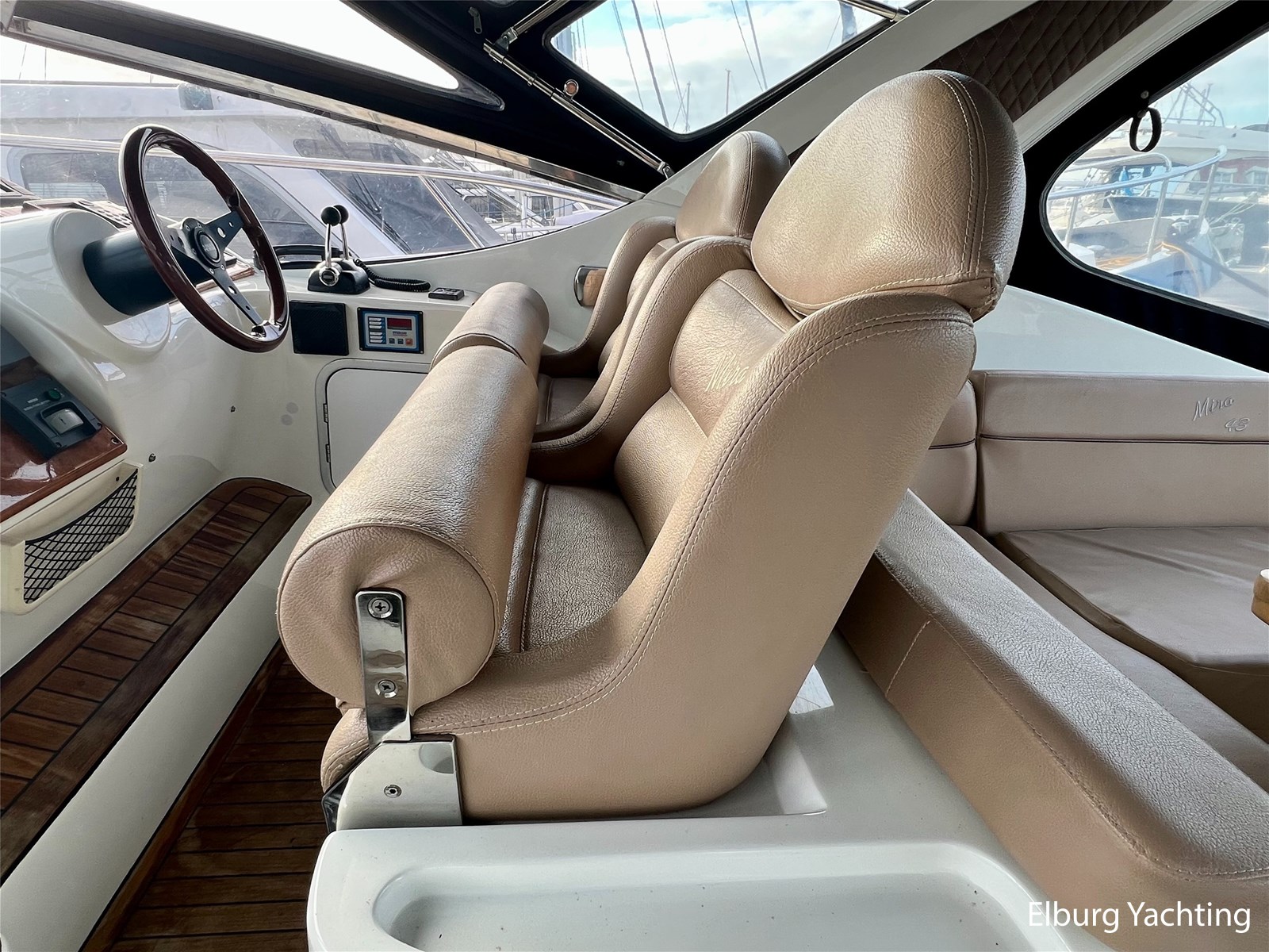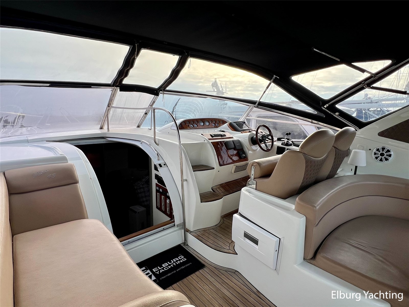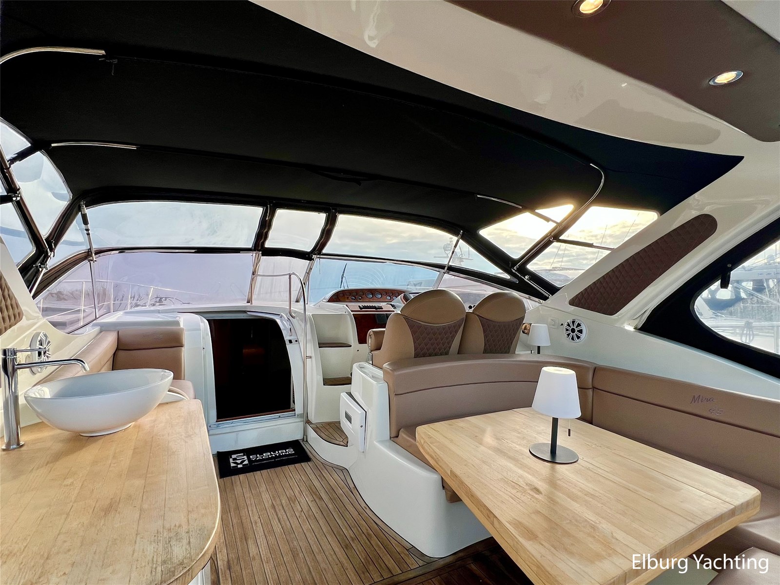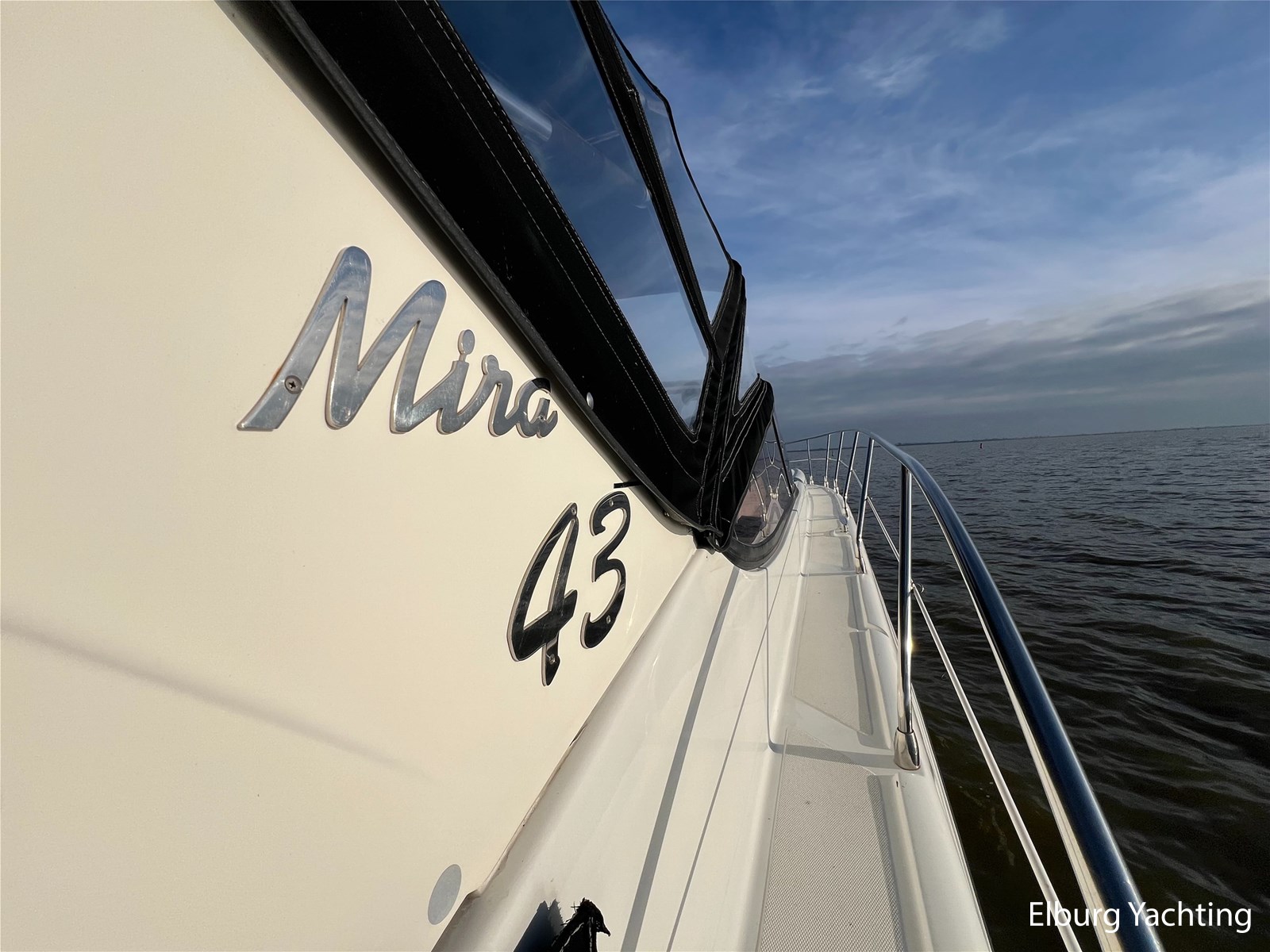 Italiaans design in combinatie met veel praktische ruimte kenmerkt deze Mira 43 van de werf Innovazione e Progetti uit Italie. Dit jacht is van bouwjaar 2004 en is voorzien van twee krachtige Volvo Penta D6 motoren met elk 350 pk. De aandrijving verloopt via twee Volvo Penta DPH hekdrives, welke in 2025 zijn geserviced. Deze Mira 43 is voorzien van: Volledige tent rondom kuip met uitristbare delen, hydraulisch uitschuifbare gangway met afstandsbediening, groot bergluik in zwemplateau, kuip voorzien van koelkast / spoelkom / radio met speakers, loop naar het voordek via gangboorden maar ook binnendoor via opstap bij stuurstand, afneembaar zonnebed op het voordek, elektrisch/hydraulisch bedienbaar luik naar machinekamer, diverse 230V aansluitpunten door de boot, TV in salon (2025), tapijt delen in het interieur uitneembaar, 2 x bergluik in salonvloer. Verfsysteem onderwaterschip vernieuwd in juli 2025. Dit schip is op afspraak in Nederland te bezichtigen. Wij maken graag met u een afspraak voor een vrijblijvend bezoek aan boord. Voor vragen en/of het maken van een afspraak bent u 7 dagen per week van harte welkom bij Elburg Yachting.