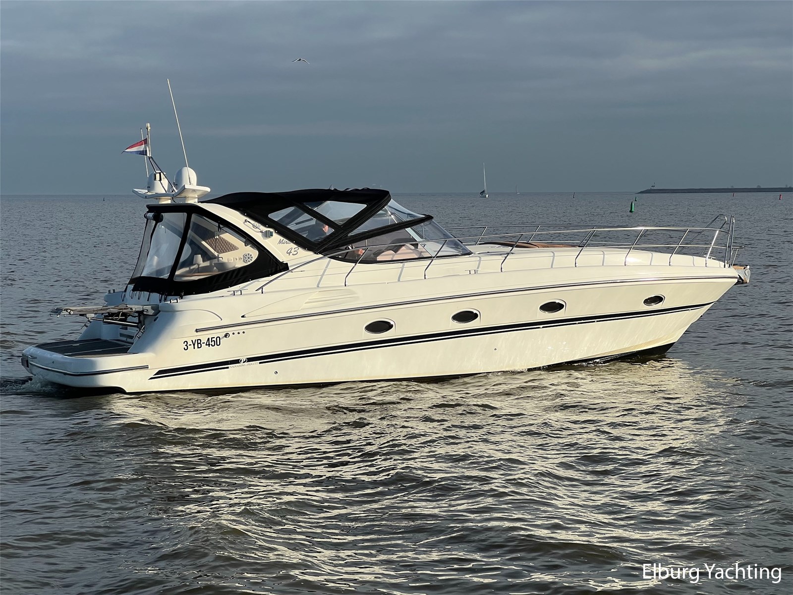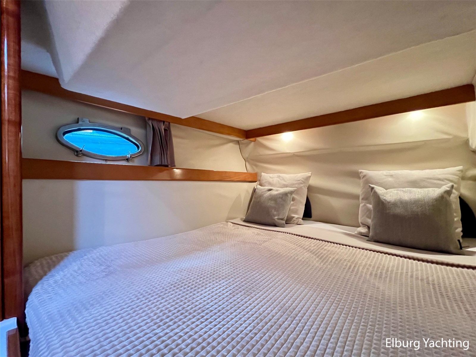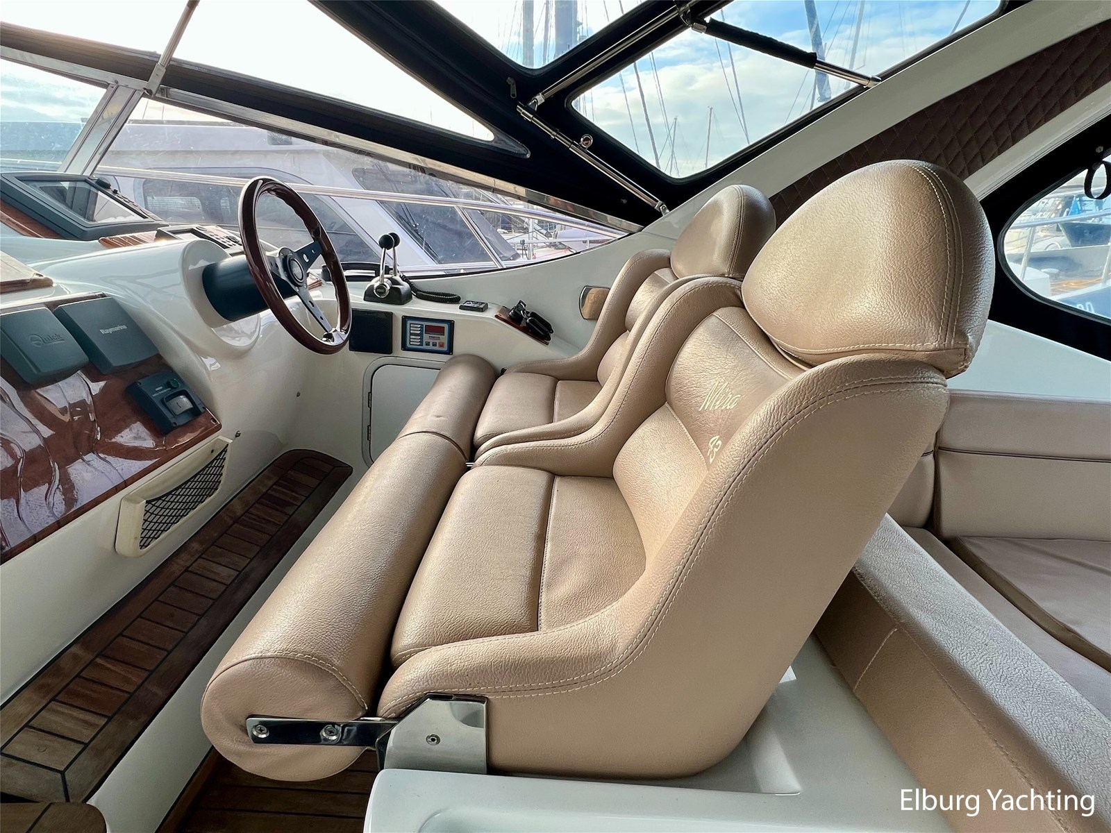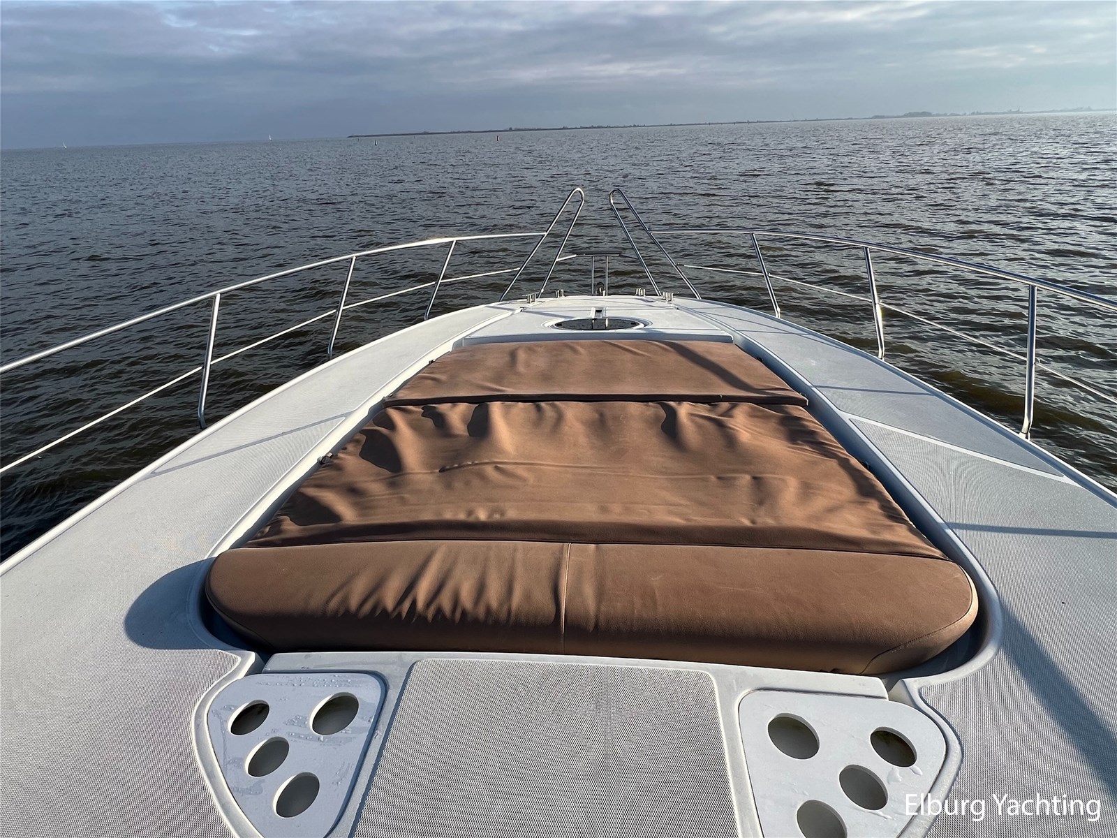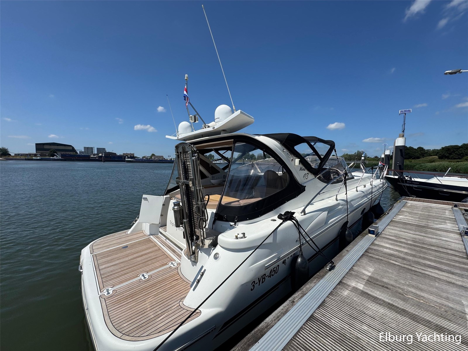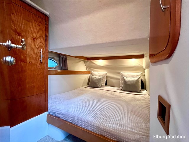 Italiaans design in combinatie met veel praktische ruimte kenmerkt deze Mira 43 van de werf Innovazione e Progetti uit Italie. Dit jacht is van bouwjaar 2004 en is voorzien van twee krachtige Volvo Penta D6 motoren met elk 350 pk. De aandrijving verloopt via twee Volvo Penta DPH hekdrives, welke in 2025 zijn geserviced. Deze Mira 43 is voorzien van: Volledige tent rondom kuip met uitristbare delen, hydraulisch uitschuifbare gangway met afstandsbediening, groot bergluik in zwemplateau, kuip voorzien van koelkast / spoelkom / radio met speakers, loop naar het voordek via gangboorden maar ook binnendoor via opstap bij stuurstand, afneembaar zonnebed op het voordek, elektrisch/hydraulisch bedienbaar luik naar machinekamer, diverse 230V aansluitpunten door de boot, TV in salon (2025), tapijt delen in het interieur uitneembaar, 2 x bergluik in salonvloer. Verfsysteem onderwaterschip vernieuwd in juli 2025. Dit schip is op afspraak in Nederland te bezichtigen. Wij maken graag met u een afspraak voor een vrijblijvend bezoek aan boord. Voor vragen en/of het maken van een afspraak bent u 7 dagen per week van harte welkom bij Elburg Yachting.