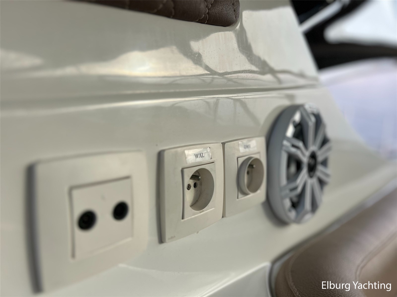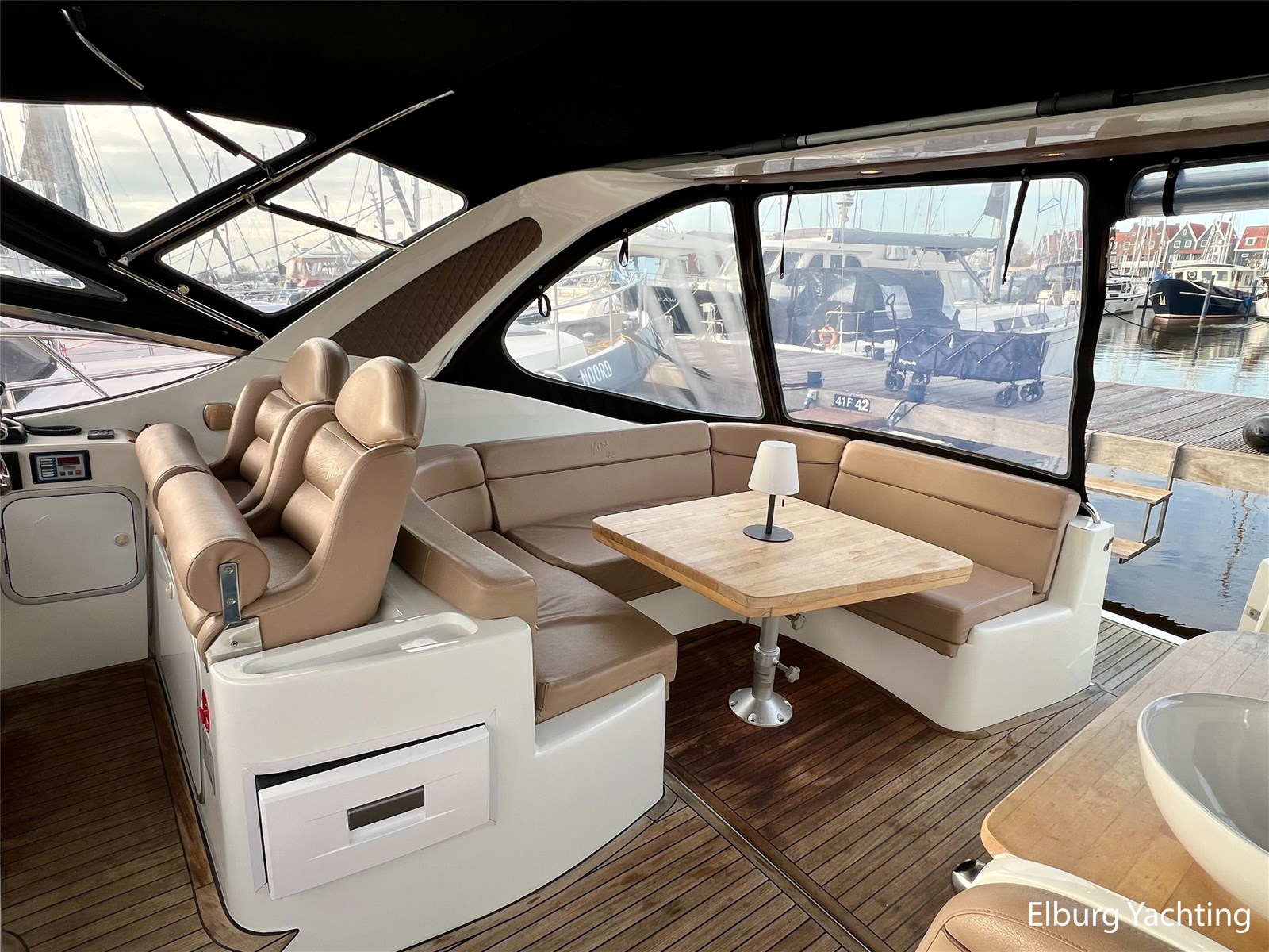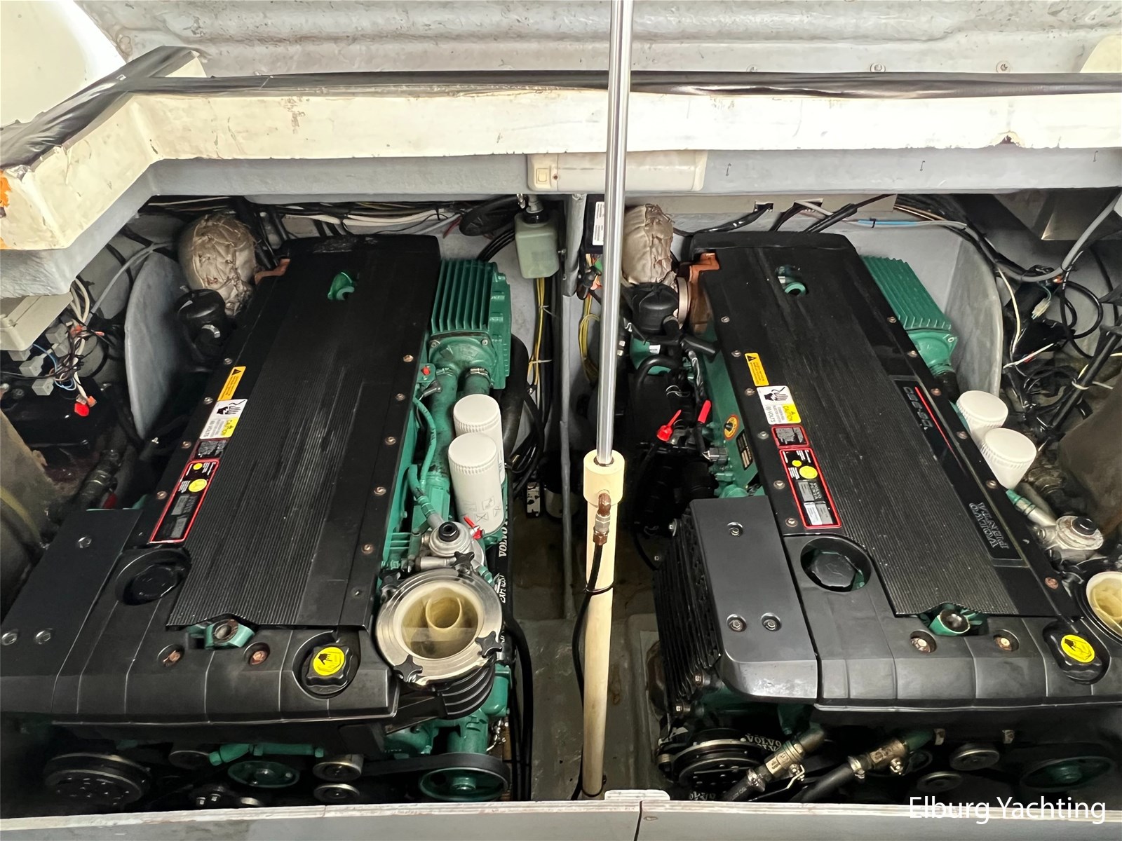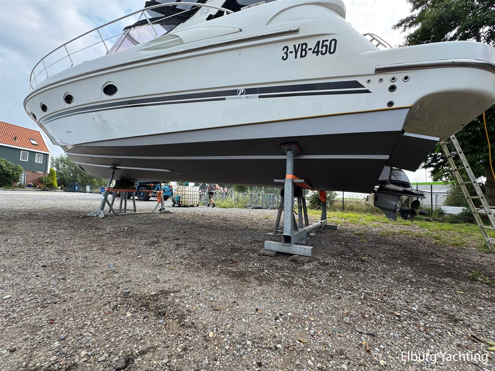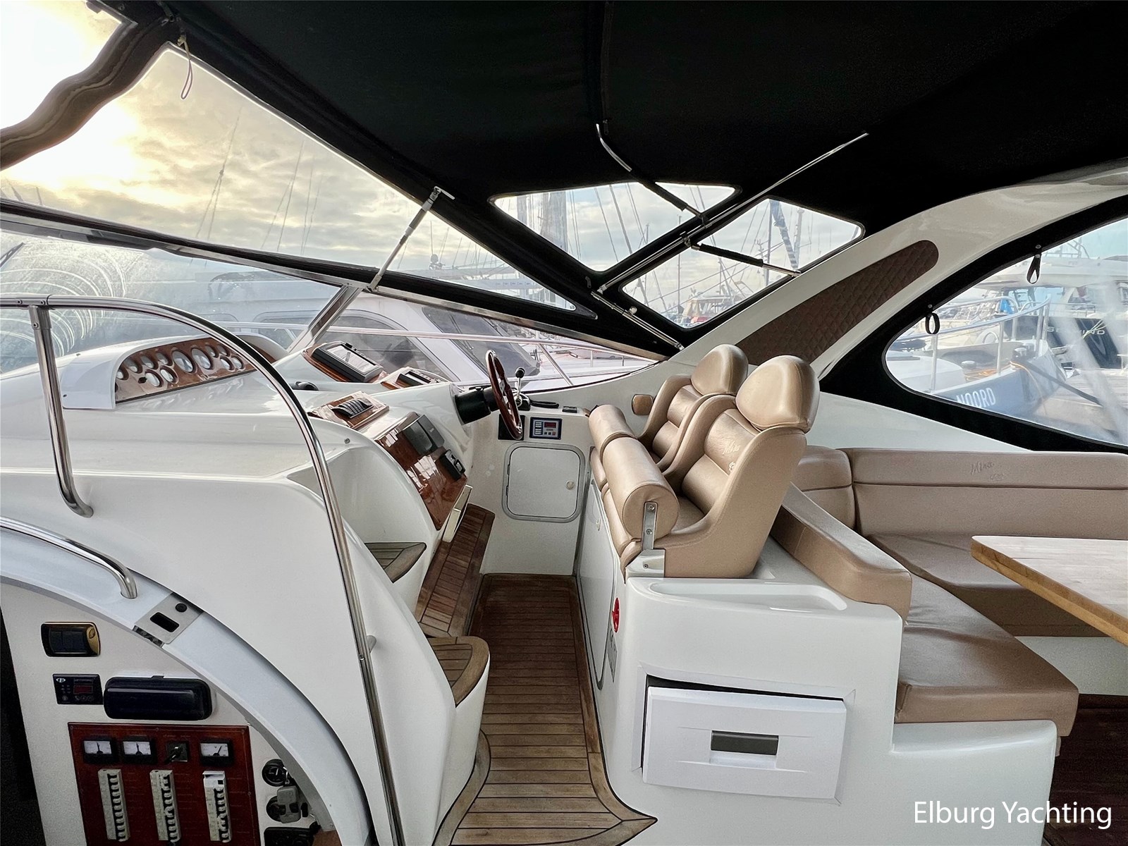 Italiaans design in combinatie met veel praktische ruimte kenmerkt deze Mira 43 van de werf Innovazione e Progetti uit Italie. Dit jacht is van bouwjaar 2004 en is voorzien van twee krachtige Volvo Penta D6 motoren met elk 350 pk. De aandrijving verloopt via twee Volvo Penta DPH hekdrives, welke in 2025 zijn geserviced. Deze Mira 43 is voorzien van: Volledige tent rondom kuip met uitristbare delen, hydraulisch uitschuifbare gangway met afstandsbediening, groot bergluik in zwemplateau, kuip voorzien van koelkast / spoelkom / radio met speakers, loop naar het voordek via gangboorden maar ook binnendoor via opstap bij stuurstand, afneembaar zonnebed op het voordek, elektrisch/hydraulisch bedienbaar luik naar machinekamer, diverse 230V aansluitpunten door de boot, TV in salon (2025), tapijt delen in het interieur uitneembaar, 2 x bergluik in salonvloer. Verfsysteem onderwaterschip vernieuwd in juli 2025. Dit schip is op afspraak in Nederland te bezichtigen. Wij maken graag met u een afspraak voor een vrijblijvend bezoek aan boord. Voor vragen en/of het maken van een afspraak bent u 7 dagen per week van harte welkom bij Elburg Yachting.