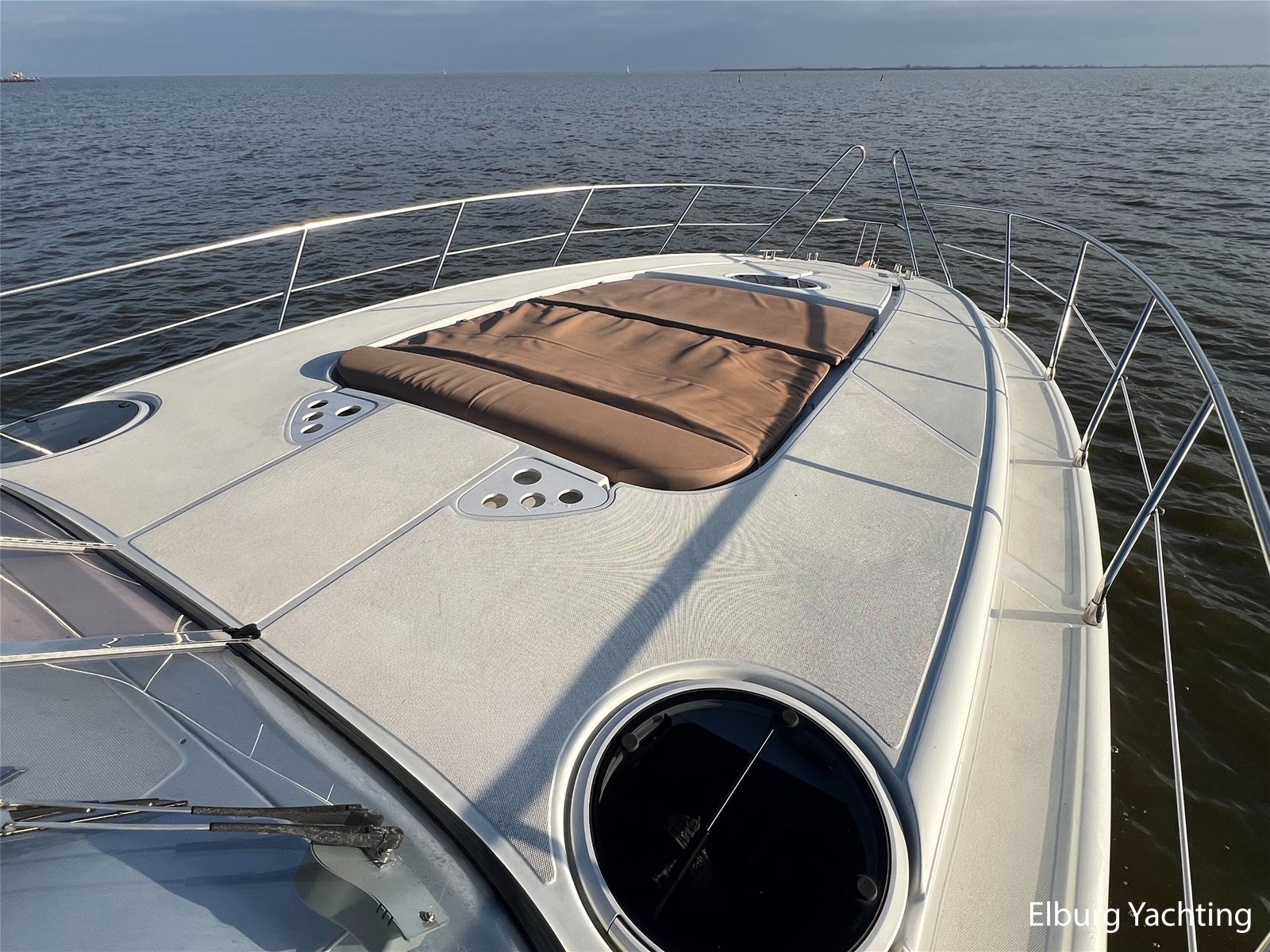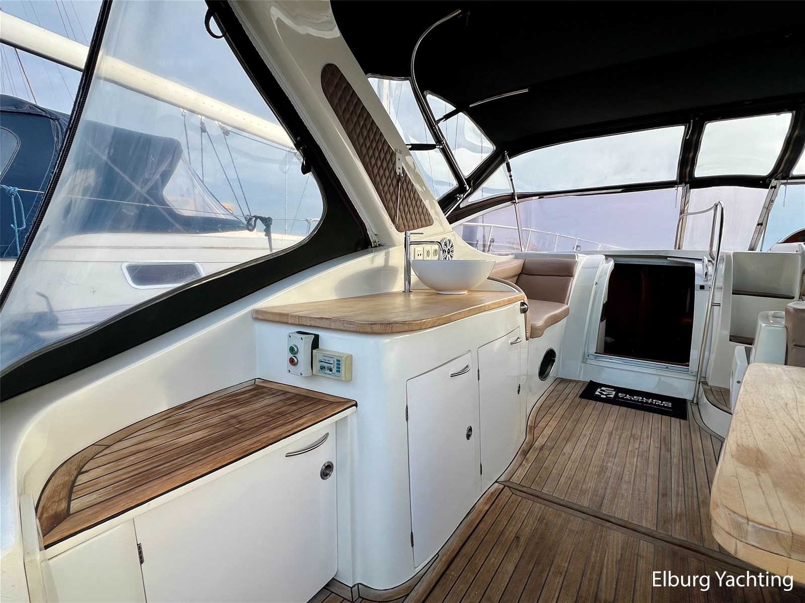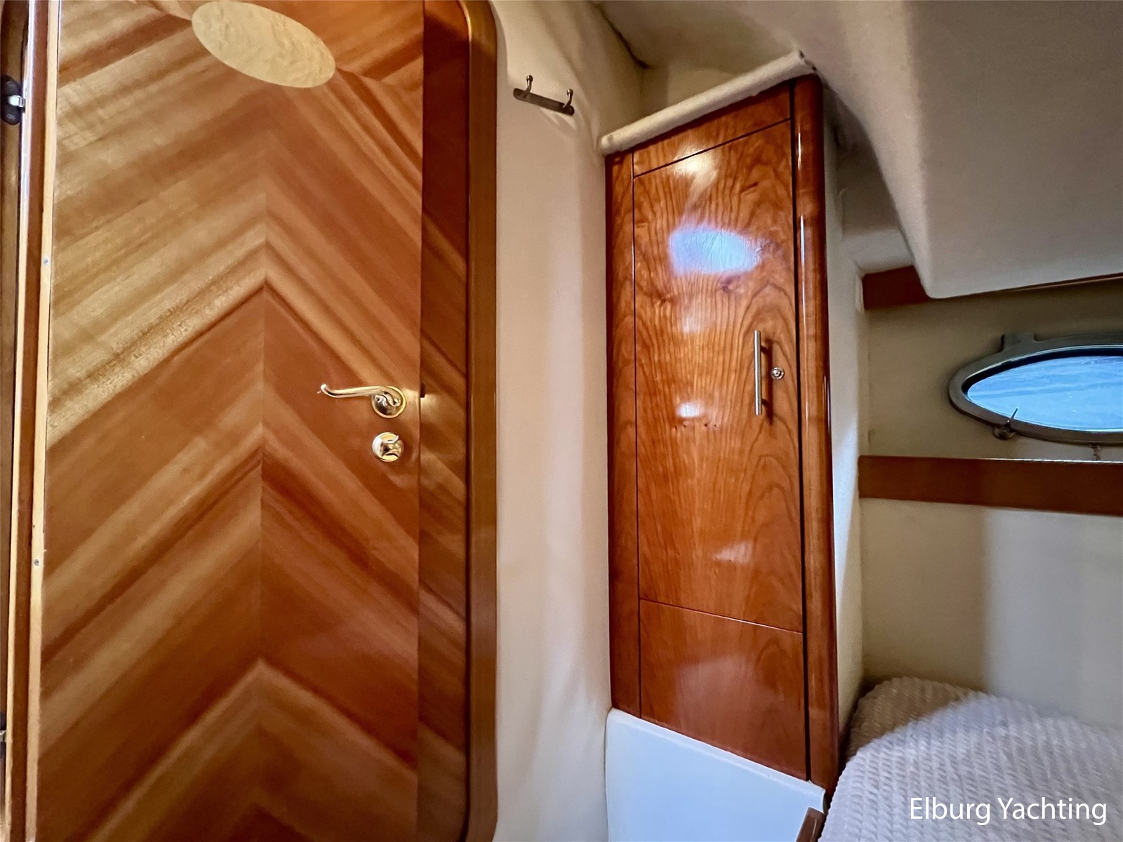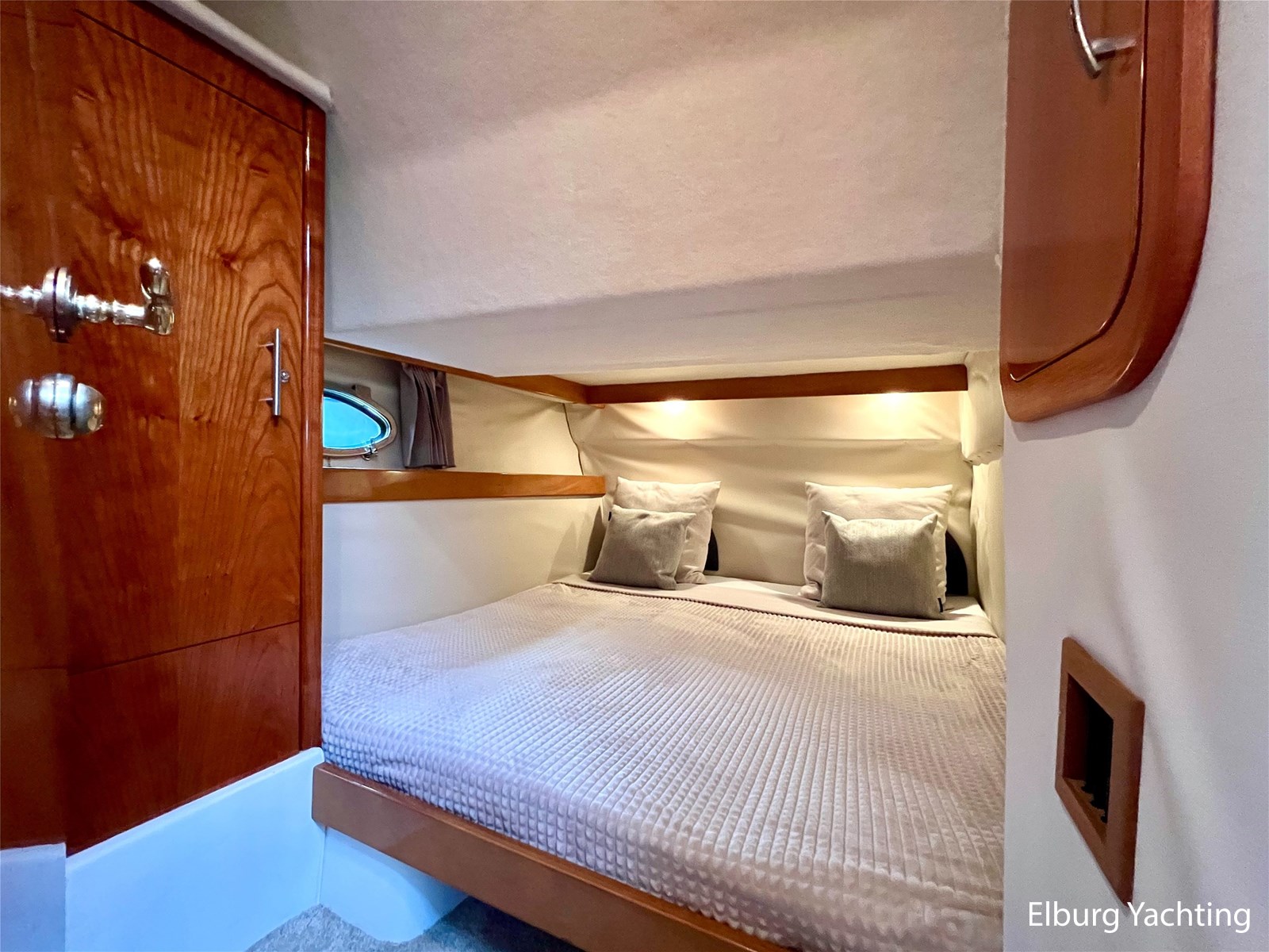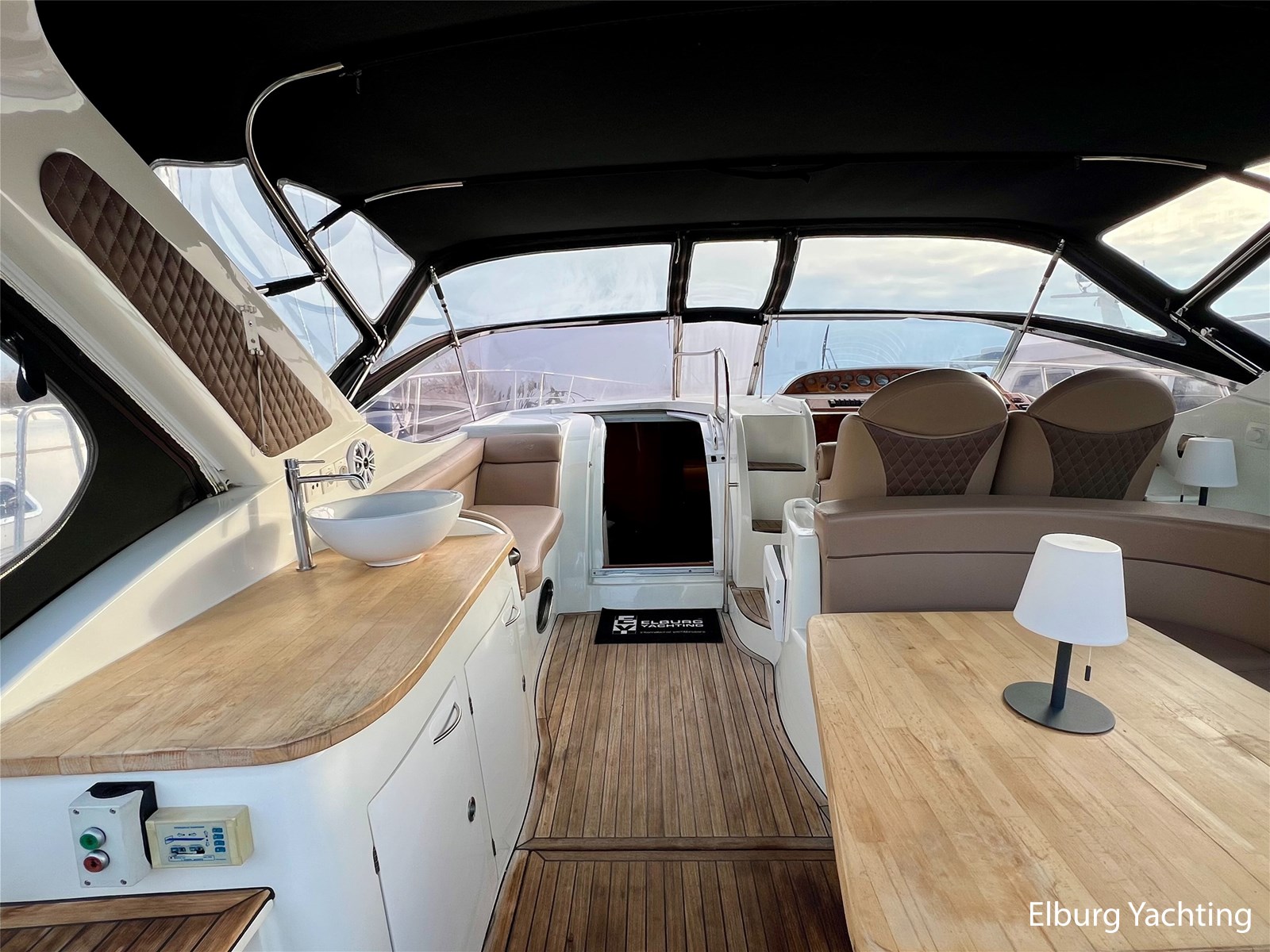 Italiaans design in combinatie met veel praktische ruimte kenmerkt deze Mira 43 van de werf Innovazione e Progetti uit Italie. Dit jacht is van bouwjaar 2004 en is voorzien van twee krachtige Volvo Penta D6 motoren met elk 350 pk. De aandrijving verloopt via twee Volvo Penta DPH hekdrives, welke in 2025 zijn geserviced. Deze Mira 43 is voorzien van: Volledige tent rondom kuip met uitristbare delen, hydraulisch uitschuifbare gangway met afstandsbediening, groot bergluik in zwemplateau, kuip voorzien van koelkast / spoelkom / radio met speakers, loop naar het voordek via gangboorden maar ook binnendoor via opstap bij stuurstand, afneembaar zonnebed op het voordek, elektrisch/hydraulisch bedienbaar luik naar machinekamer, diverse 230V aansluitpunten door de boot, TV in salon (2025), tapijt delen in het interieur uitneembaar, 2 x bergluik in salonvloer. Verfsysteem onderwaterschip vernieuwd in juli 2025. Dit schip is op afspraak in Nederland te bezichtigen. Wij maken graag met u een afspraak voor een vrijblijvend bezoek aan boord. Voor vragen en/of het maken van een afspraak bent u 7 dagen per week van harte welkom bij Elburg Yachting.