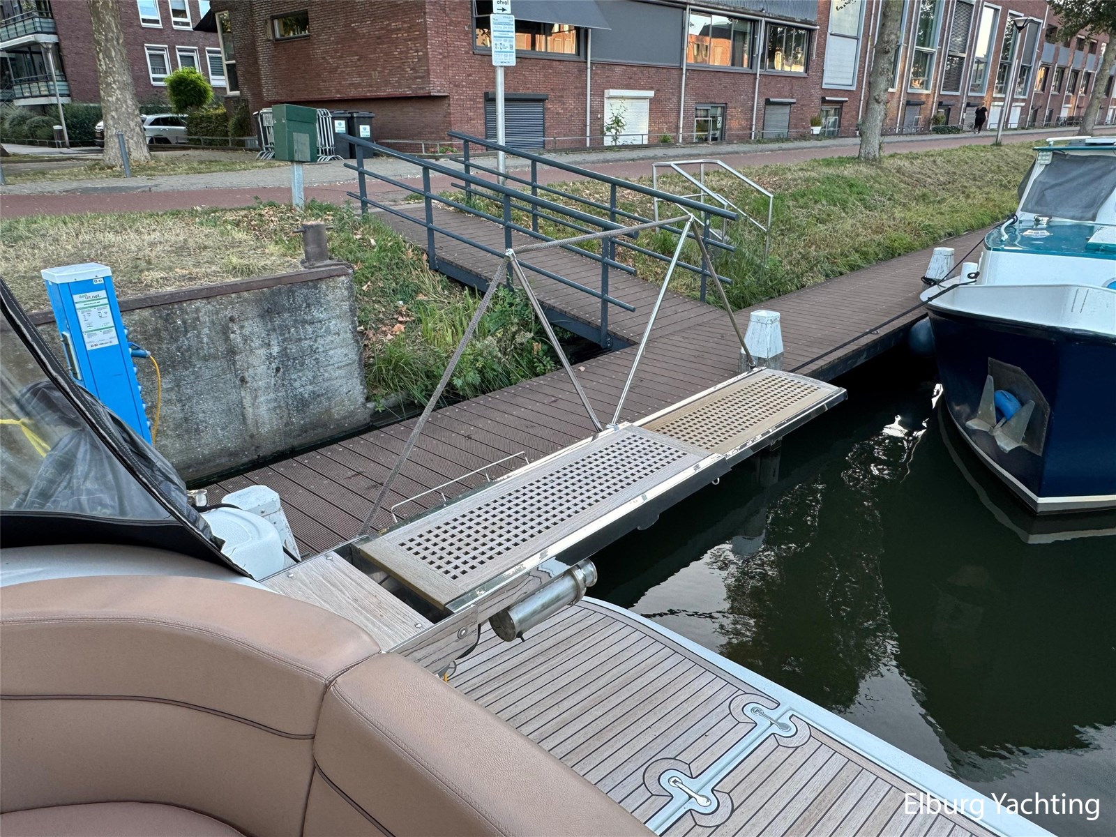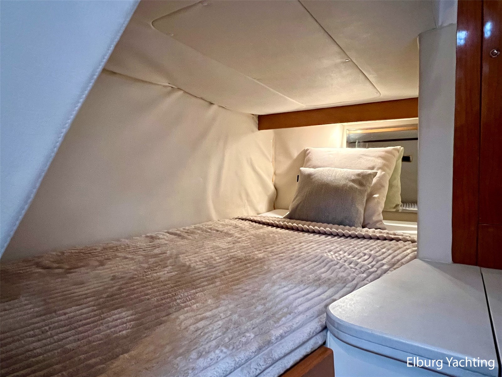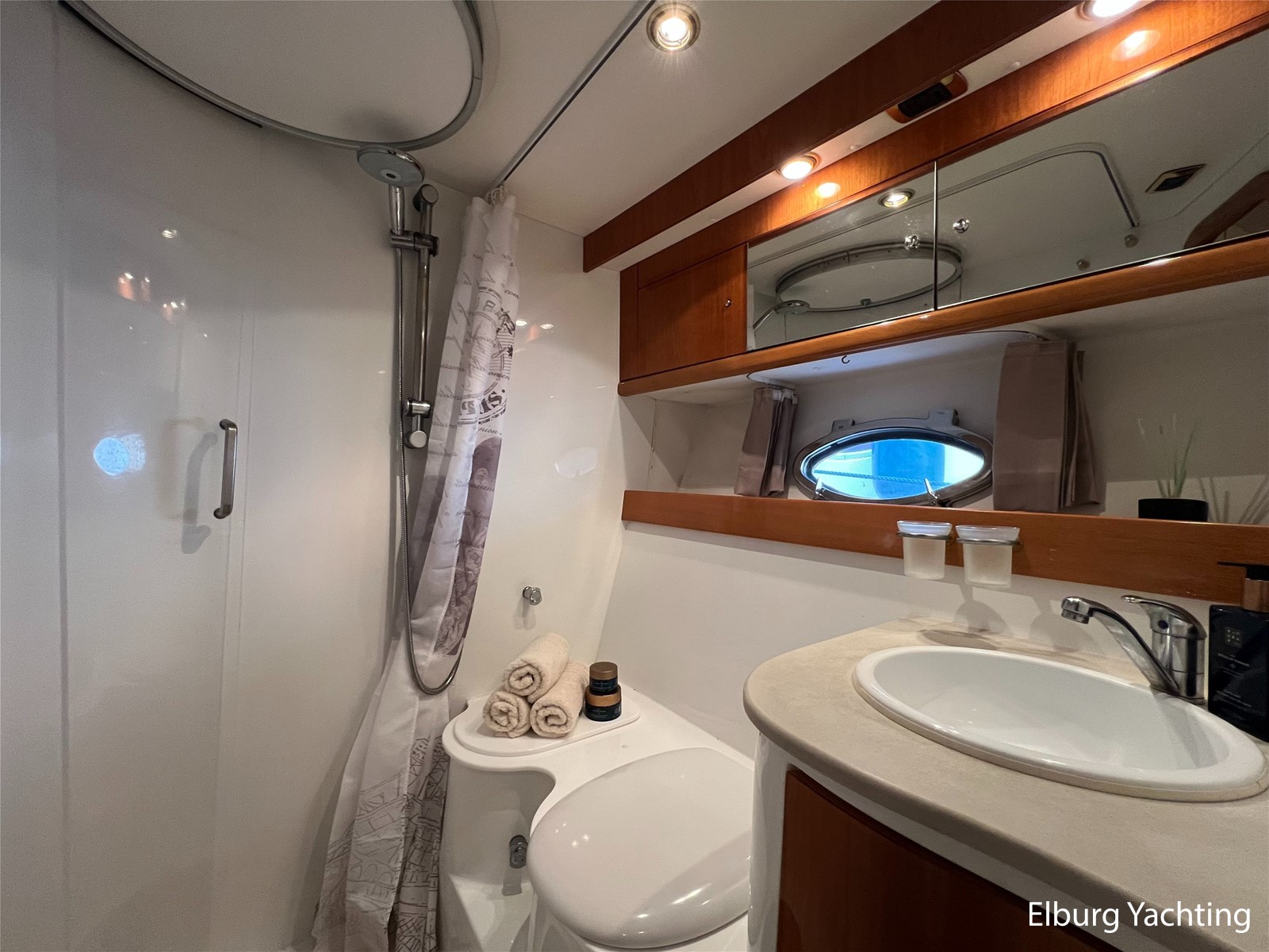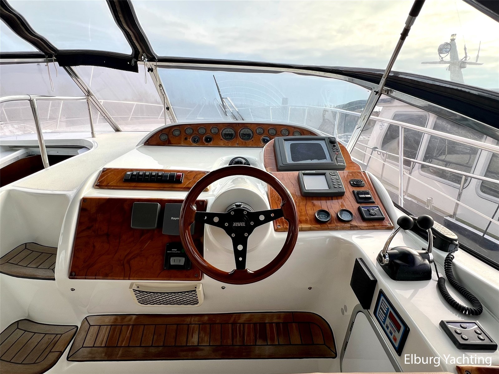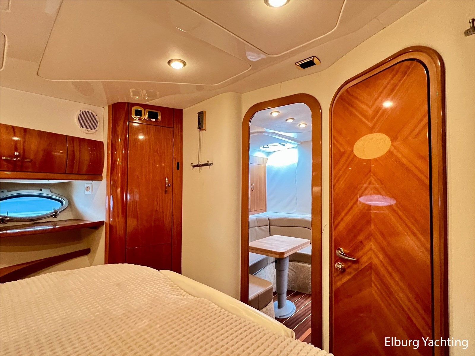 Italiaans design in combinatie met veel praktische ruimte kenmerkt deze Mira 43 van de werf Innovazione e Progetti uit Italie. Dit jacht is van bouwjaar 2004 en is voorzien van twee krachtige Volvo Penta D6 motoren met elk 350 pk. De aandrijving verloopt via twee Volvo Penta DPH hekdrives, welke in 2025 zijn geserviced. Deze Mira 43 is voorzien van: Volledige tent rondom kuip met uitristbare delen, hydraulisch uitschuifbare gangway met afstandsbediening, groot bergluik in zwemplateau, kuip voorzien van koelkast / spoelkom / radio met speakers, loop naar het voordek via gangboorden maar ook binnendoor via opstap bij stuurstand, afneembaar zonnebed op het voordek, elektrisch/hydraulisch bedienbaar luik naar machinekamer, diverse 230V aansluitpunten door de boot, TV in salon (2025), tapijt delen in het interieur uitneembaar, 2 x bergluik in salonvloer. Verfsysteem onderwaterschip vernieuwd in juli 2025. Dit schip is op afspraak in Nederland te bezichtigen. Wij maken graag met u een afspraak voor een vrijblijvend bezoek aan boord. Voor vragen en/of het maken van een afspraak bent u 7 dagen per week van harte welkom bij Elburg Yachting.
