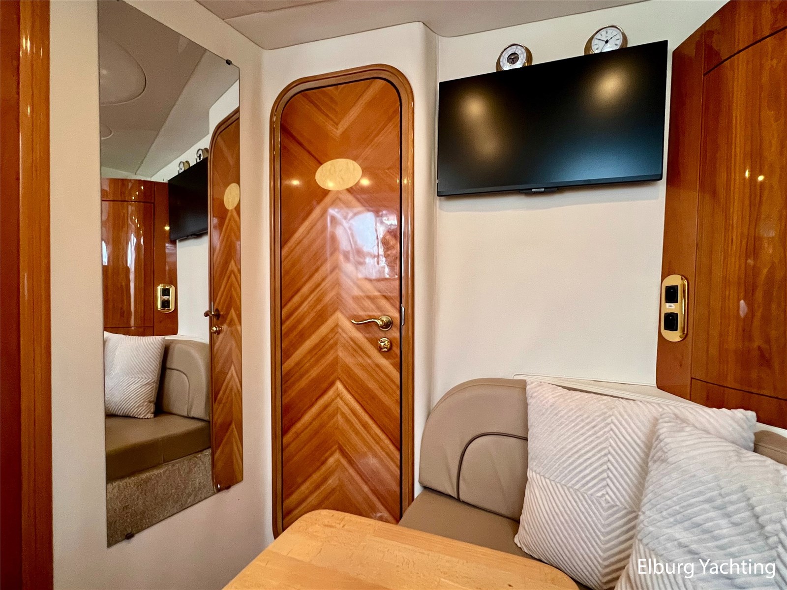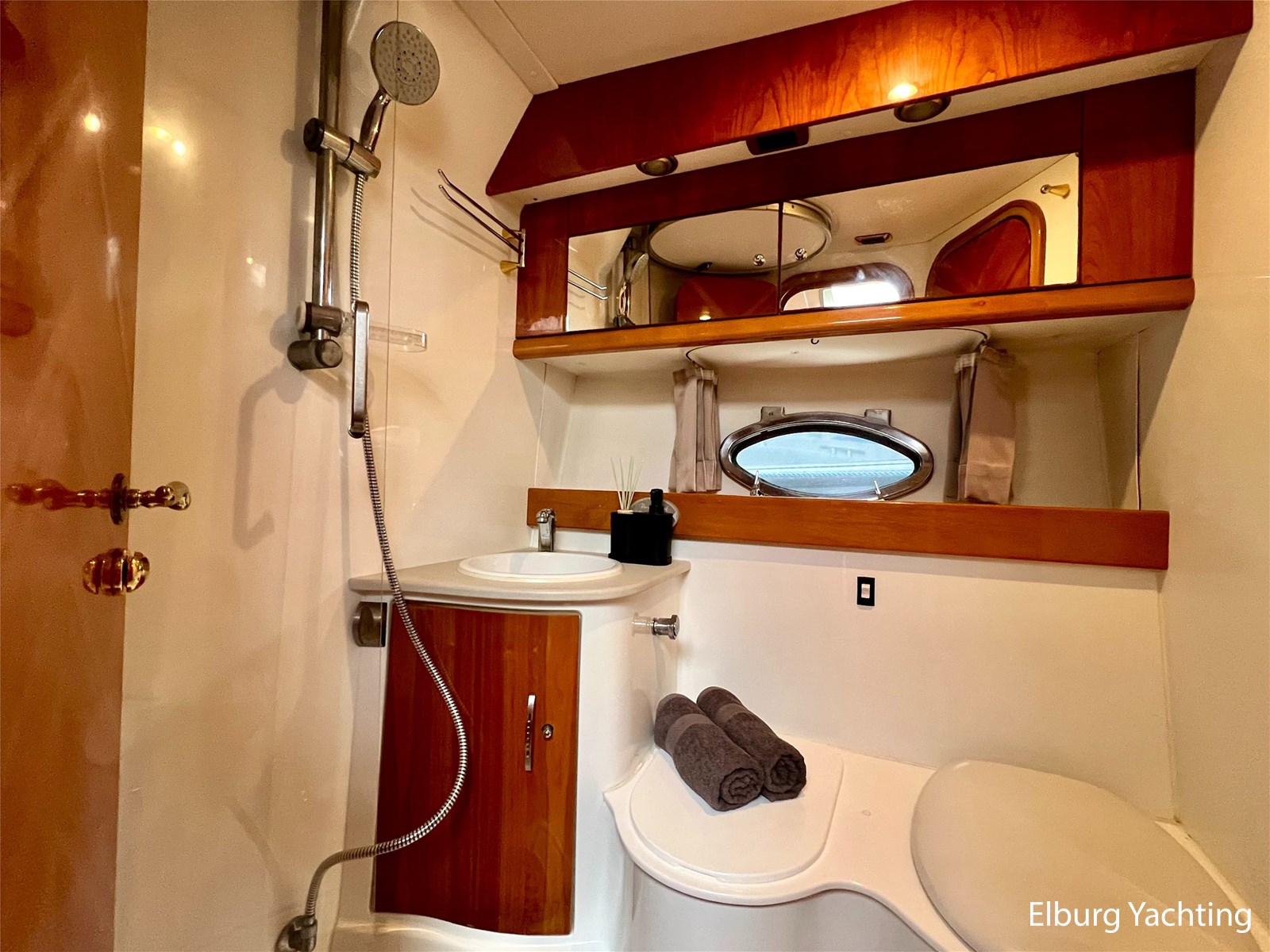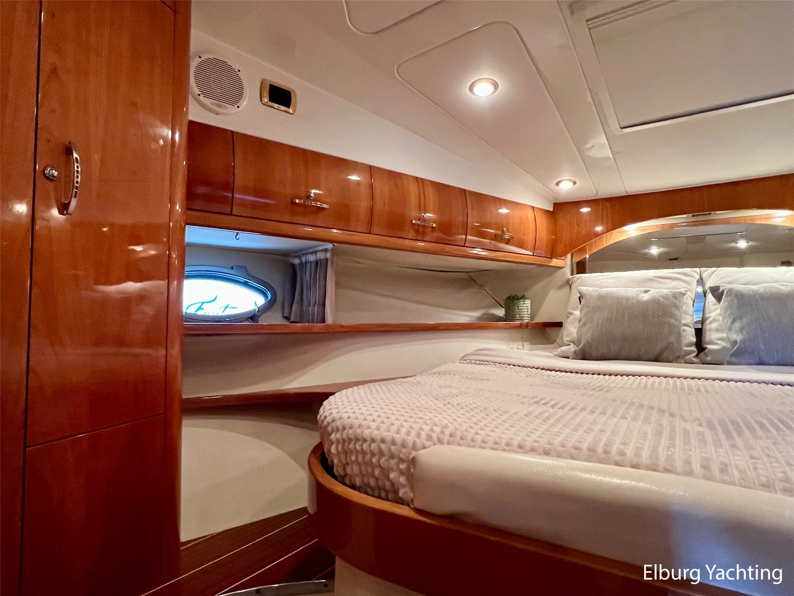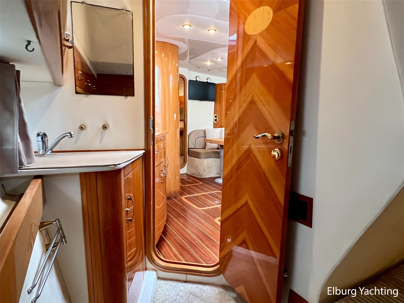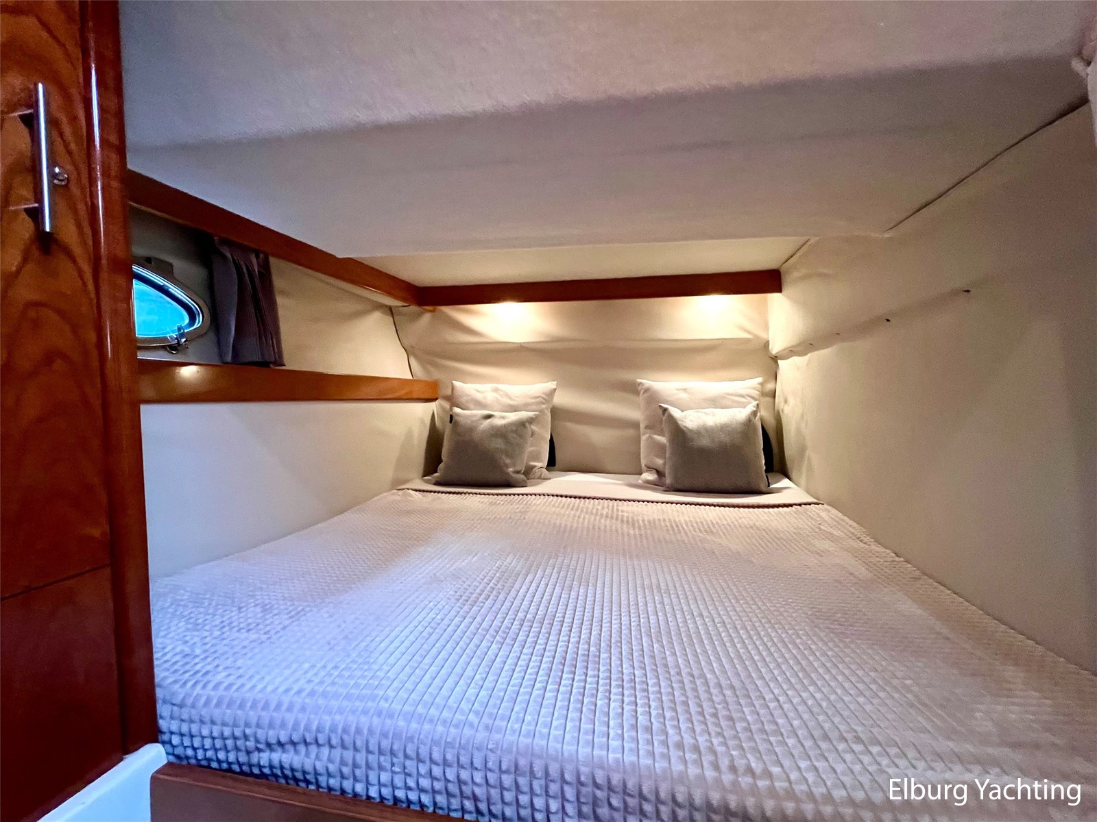 Italiaans design in combinatie met veel praktische ruimte kenmerkt deze Mira 43 van de werf Innovazione e Progetti uit Italie. Dit jacht is van bouwjaar 2004 en is voorzien van twee krachtige Volvo Penta D6 motoren met elk 350 pk. De aandrijving verloopt via twee Volvo Penta DPH hekdrives, welke in 2025 zijn geserviced. Deze Mira 43 is voorzien van: Volledige tent rondom kuip met uitristbare delen, hydraulisch uitschuifbare gangway met afstandsbediening, groot bergluik in zwemplateau, kuip voorzien van koelkast / spoelkom / radio met speakers, loop naar het voordek via gangboorden maar ook binnendoor via opstap bij stuurstand, afneembaar zonnebed op het voordek, elektrisch/hydraulisch bedienbaar luik naar machinekamer, diverse 230V aansluitpunten door de boot, TV in salon (2025), tapijt delen in het interieur uitneembaar, 2 x bergluik in salonvloer. Verfsysteem onderwaterschip vernieuwd in juli 2025. Dit schip is op afspraak in Nederland te bezichtigen. Wij maken graag met u een afspraak voor een vrijblijvend bezoek aan boord. Voor vragen en/of het maken van een afspraak bent u 7 dagen per week van harte welkom bij Elburg Yachting.