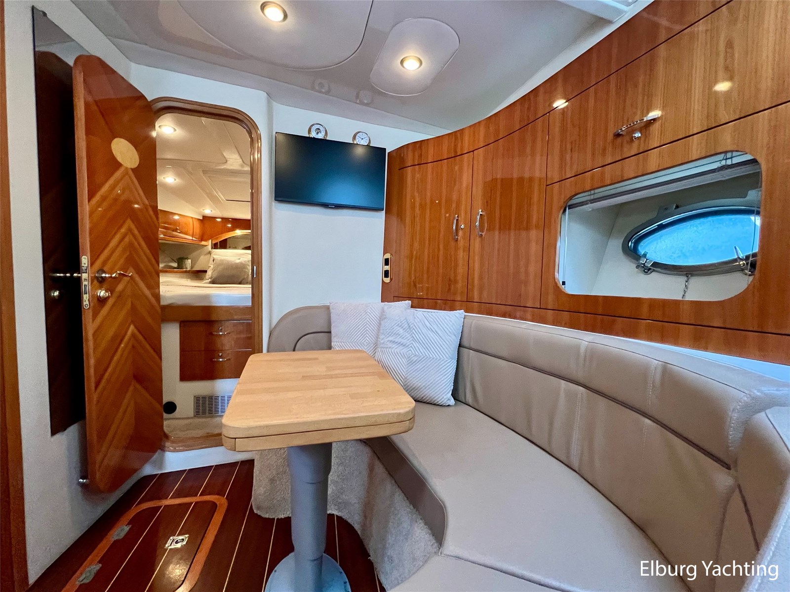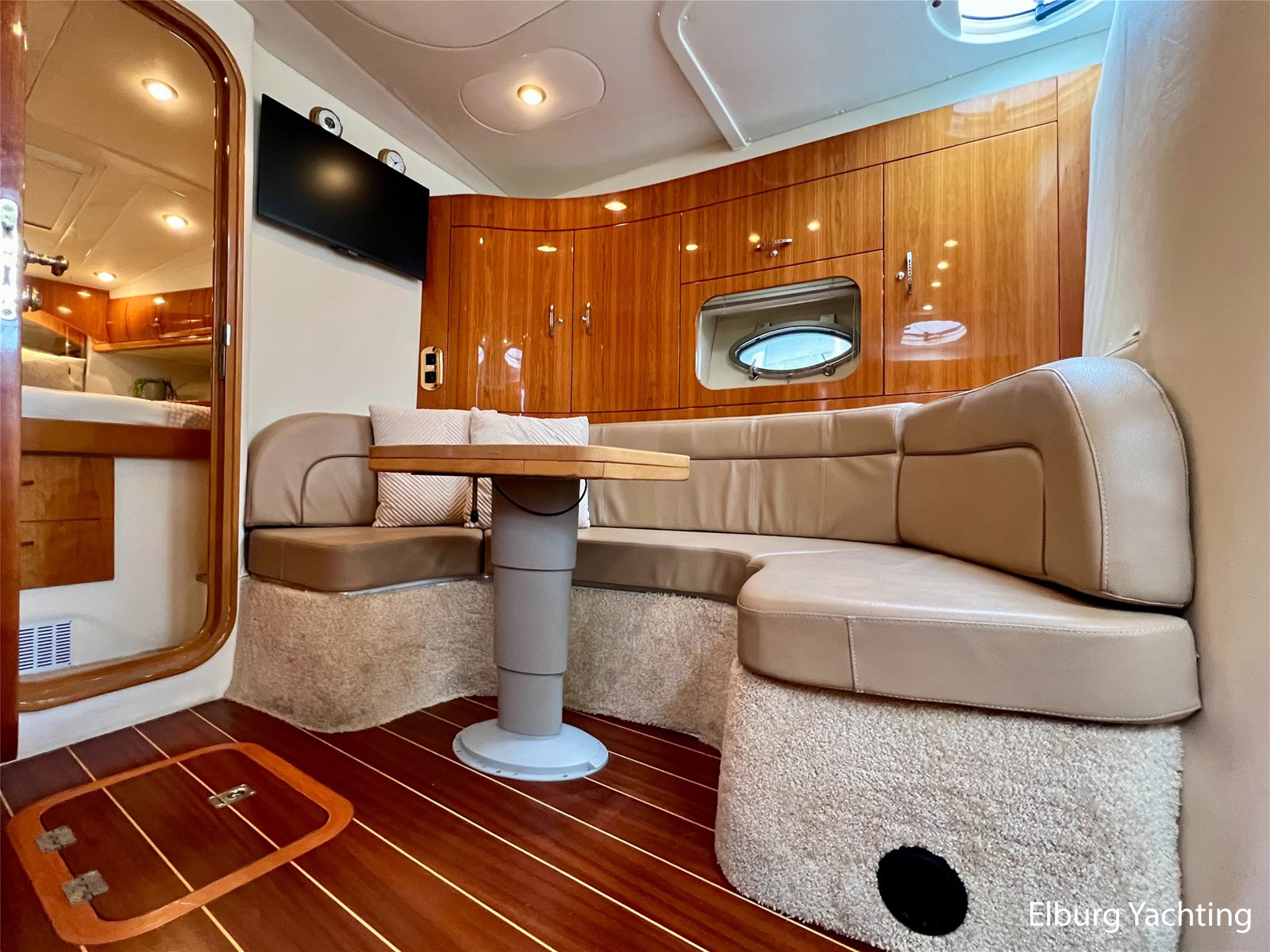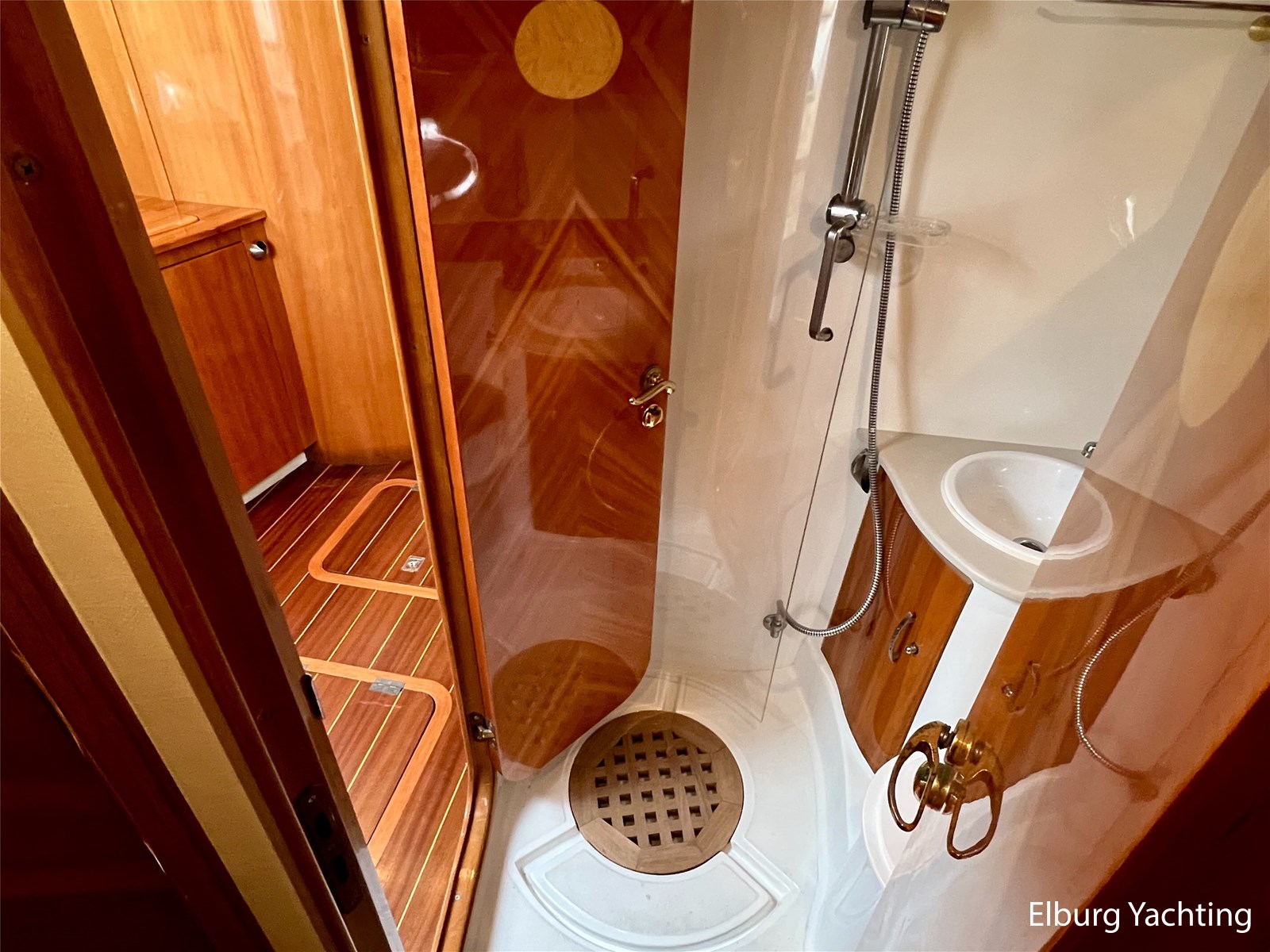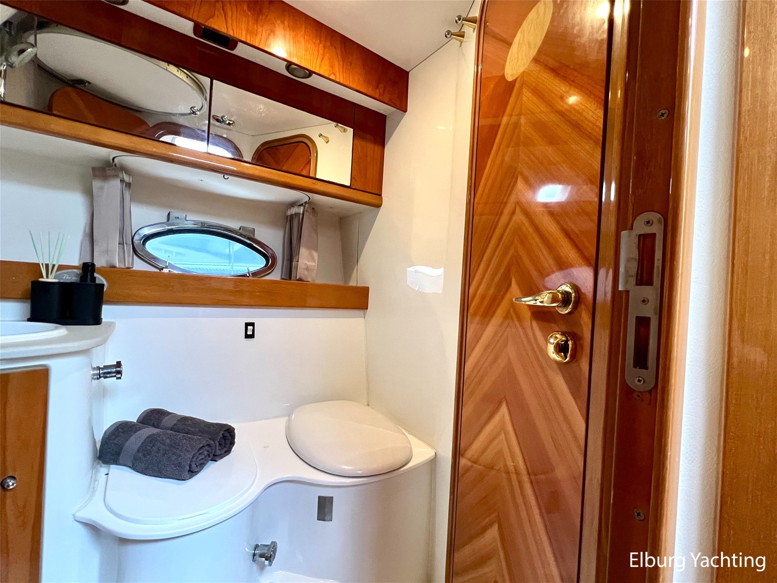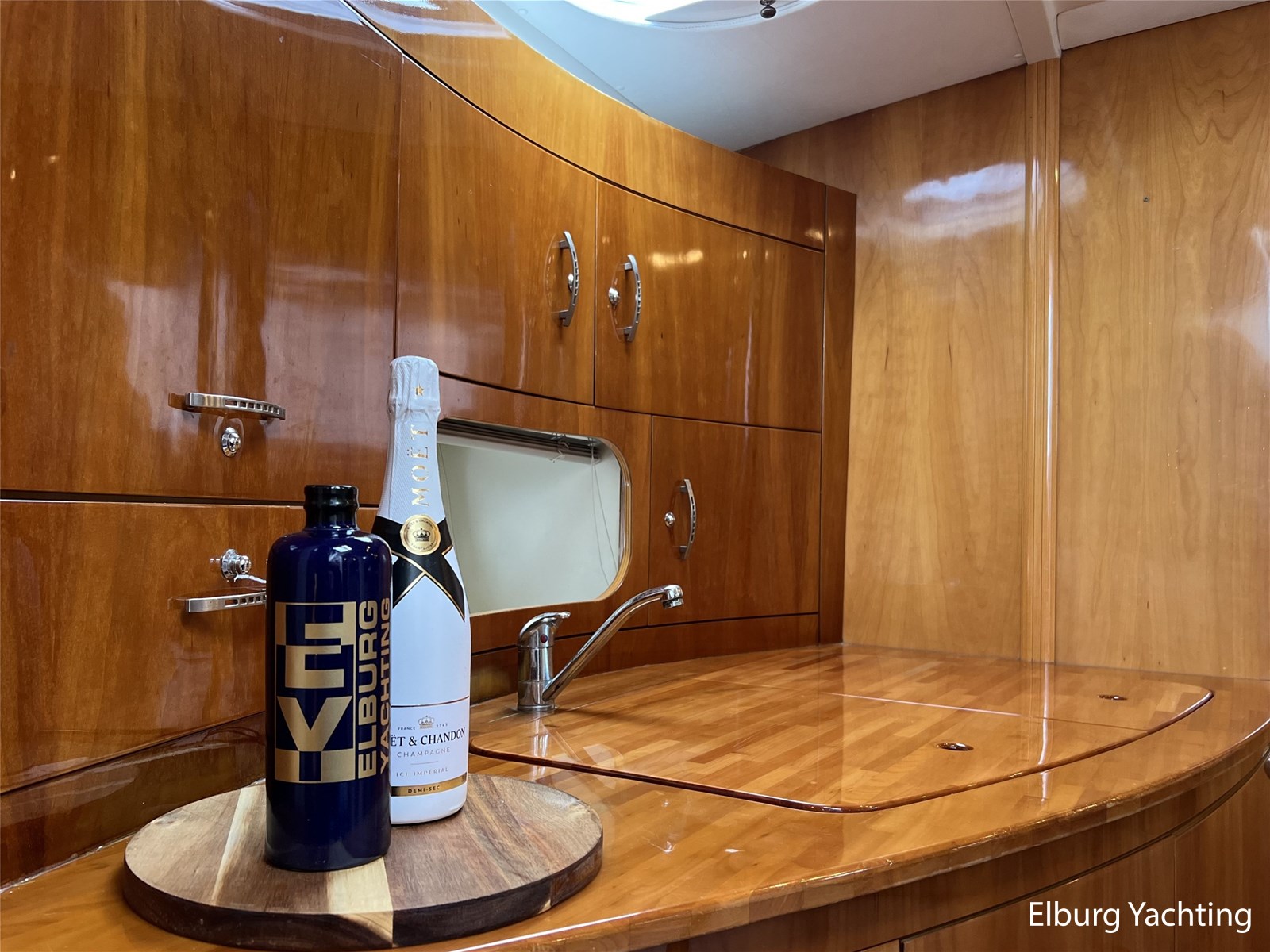 Italiaans design in combinatie met veel praktische ruimte kenmerkt deze Mira 43 van de werf Innovazione e Progetti uit Italie. Dit jacht is van bouwjaar 2004 en is voorzien van twee krachtige Volvo Penta D6 motoren met elk 350 pk. De aandrijving verloopt via twee Volvo Penta DPH hekdrives, welke in 2025 zijn geserviced. Deze Mira 43 is voorzien van: Volledige tent rondom kuip met uitristbare delen, hydraulisch uitschuifbare gangway met afstandsbediening, groot bergluik in zwemplateau, kuip voorzien van koelkast / spoelkom / radio met speakers, loop naar het voordek via gangboorden maar ook binnendoor via opstap bij stuurstand, afneembaar zonnebed op het voordek, elektrisch/hydraulisch bedienbaar luik naar machinekamer, diverse 230V aansluitpunten door de boot, TV in salon (2025), tapijt delen in het interieur uitneembaar, 2 x bergluik in salonvloer. Verfsysteem onderwaterschip vernieuwd in juli 2025. Dit schip is op afspraak in Nederland te bezichtigen. Wij maken graag met u een afspraak voor een vrijblijvend bezoek aan boord. Voor vragen en/of het maken van een afspraak bent u 7 dagen per week van harte welkom bij Elburg Yachting.